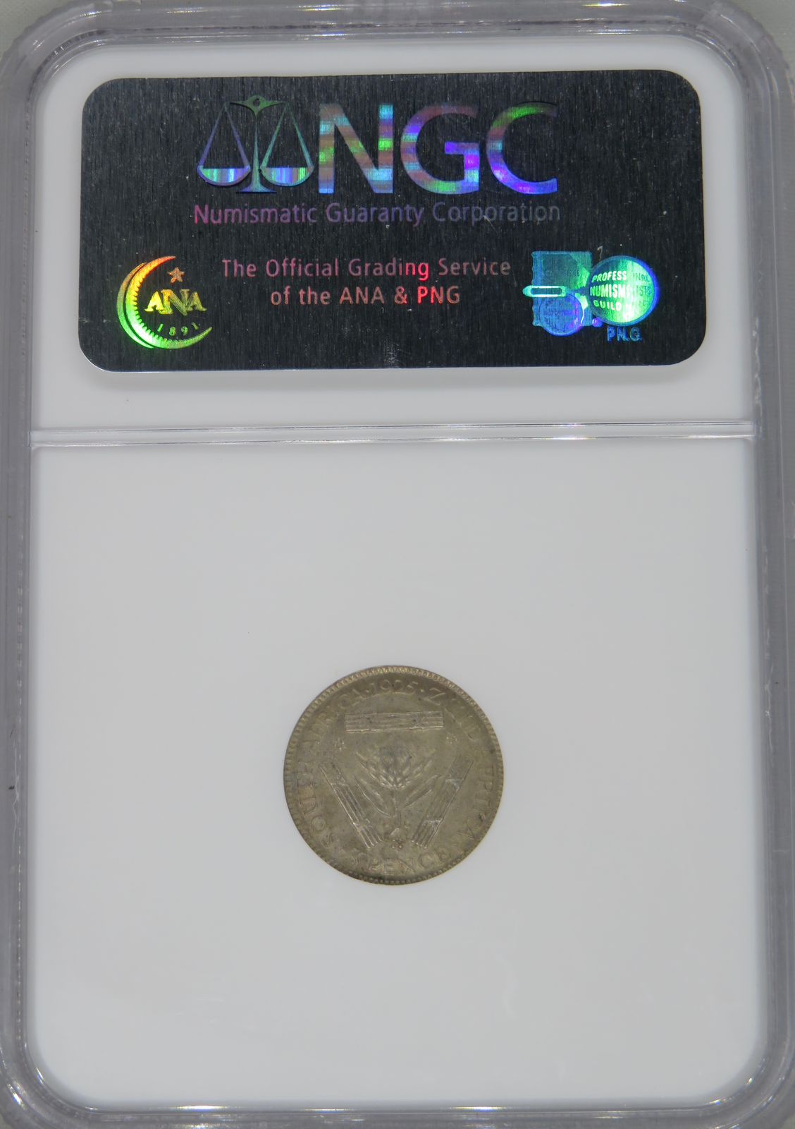 South Africa: Union George V silver 3 pence “Flower Reverse” of 1925 MS 63 NGC.