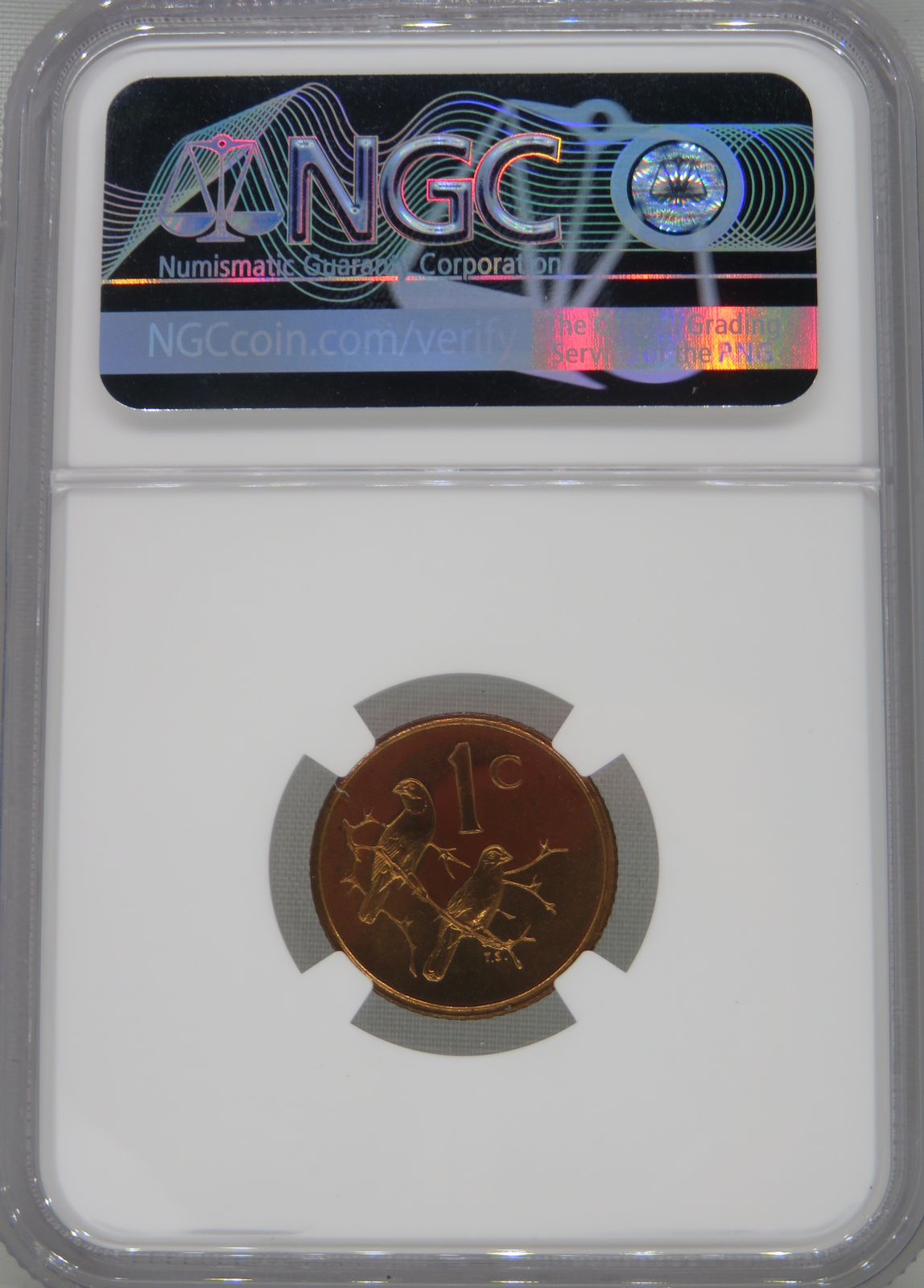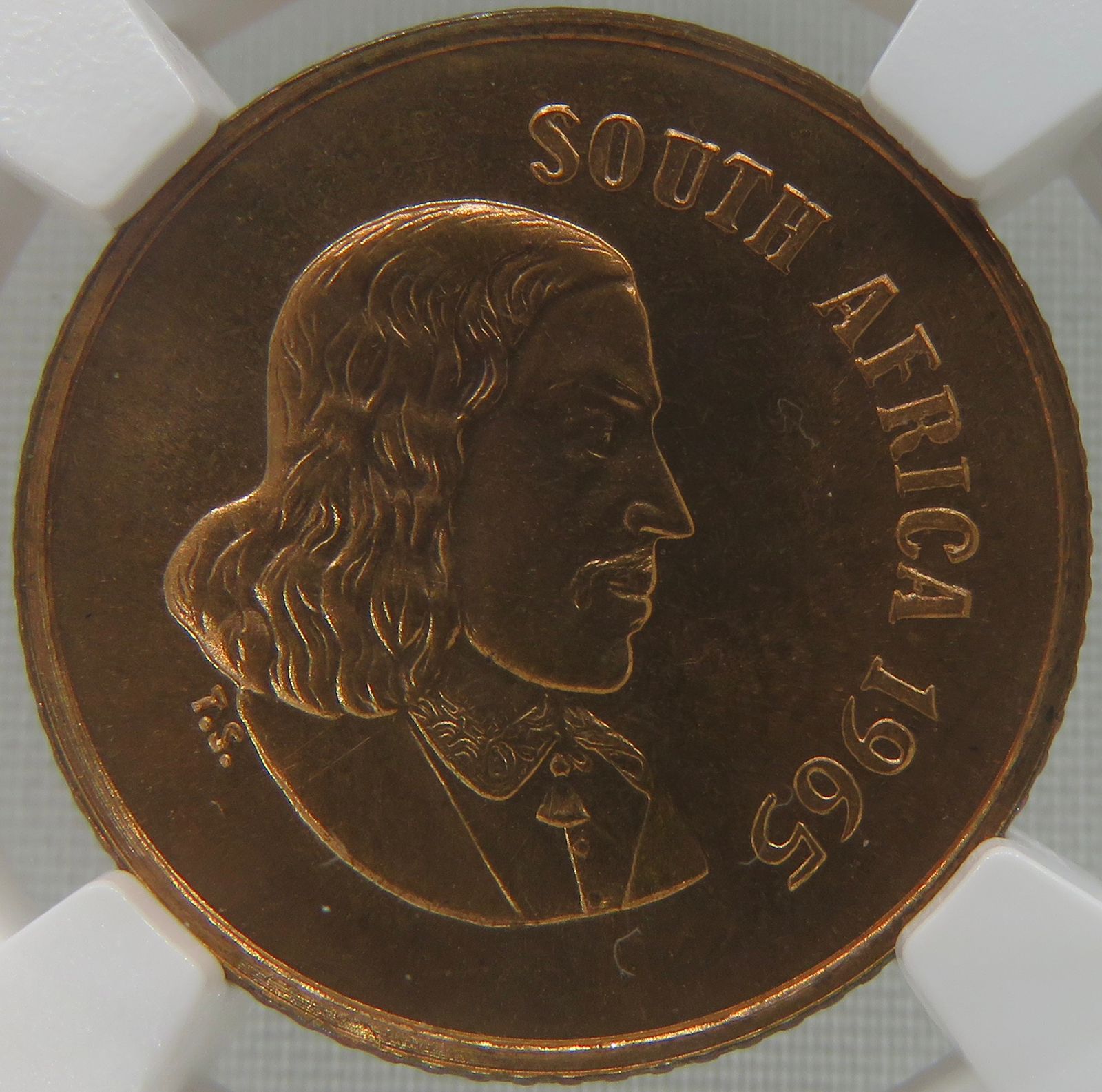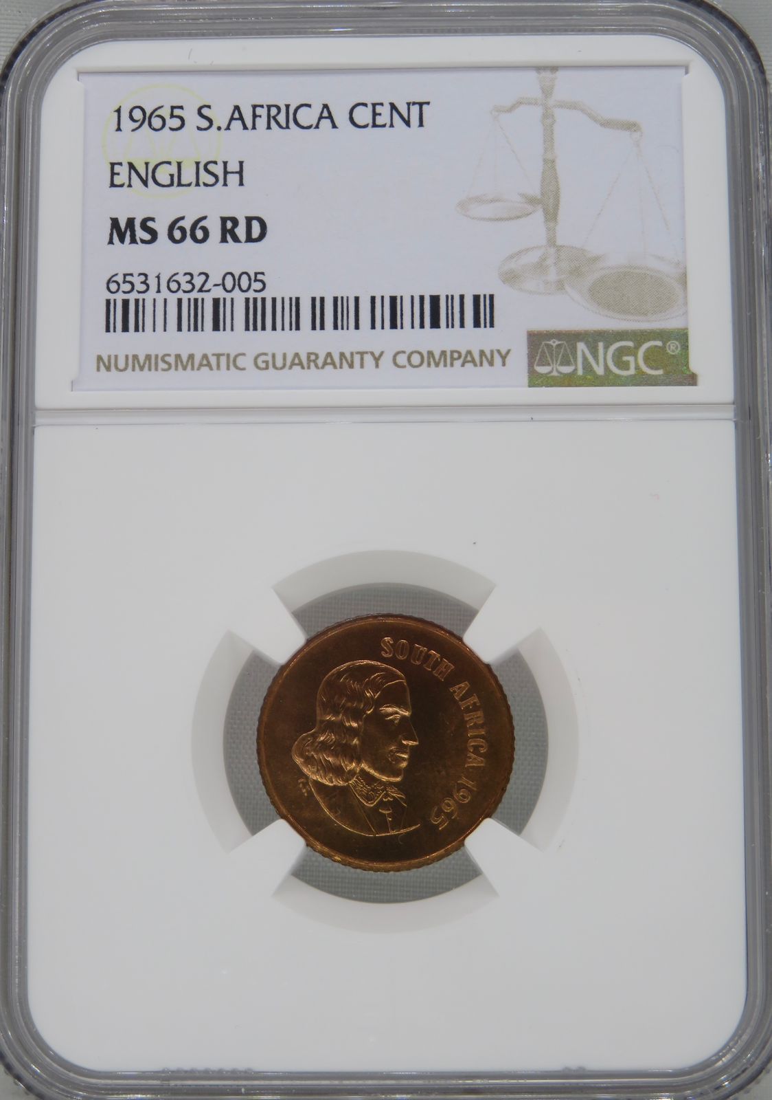 South Africa: Republic Cent “English” of 1965 MS 66 Red NGC.
