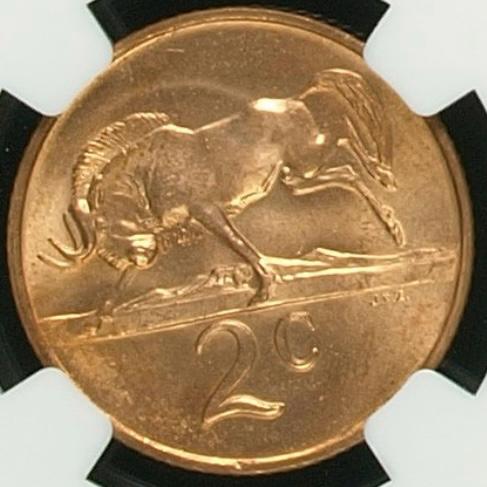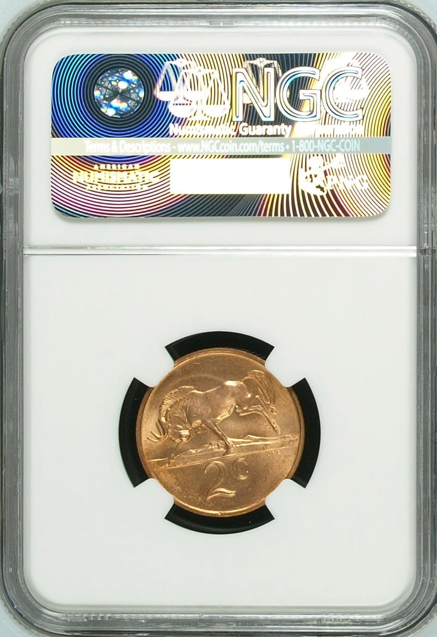 South Africa: Republic bronze 2 cents “President Swart – English” of 1968 MS 65 Red NGC.