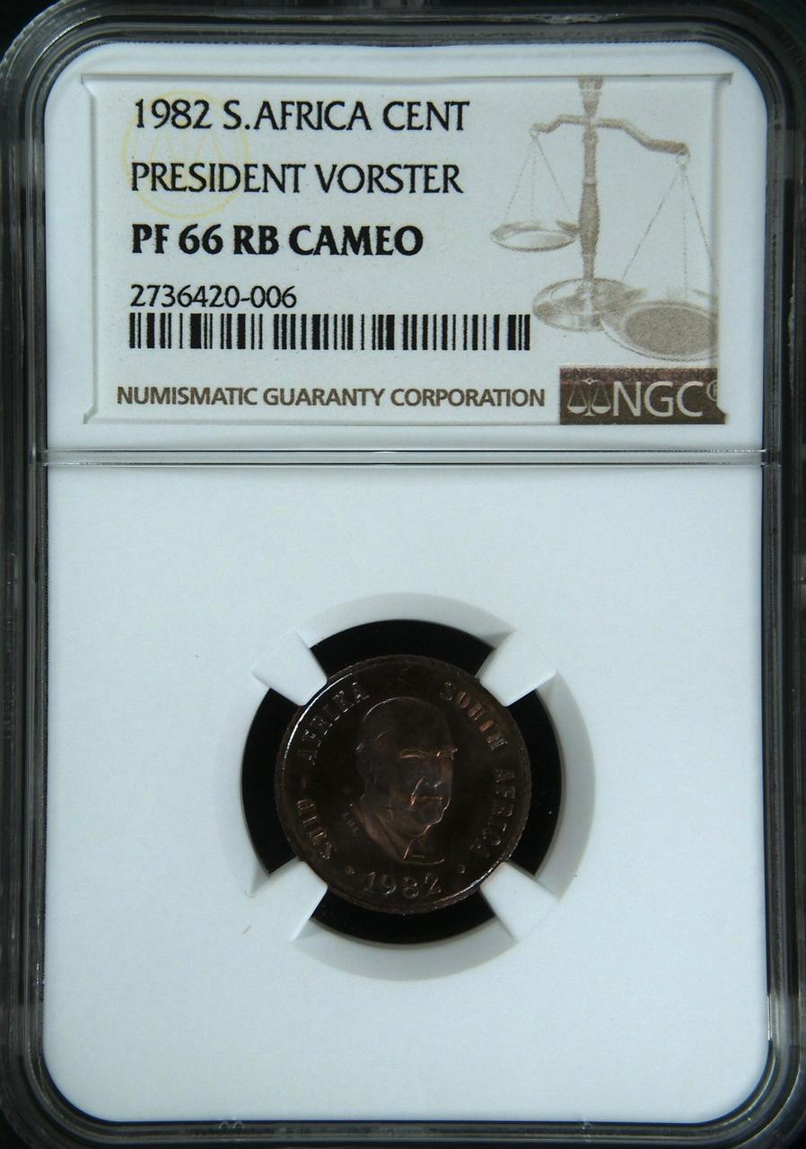Lot 21: South Africa: Republic bronze cent of 1982 Proof 66 Red & Brown Cameo NGC.