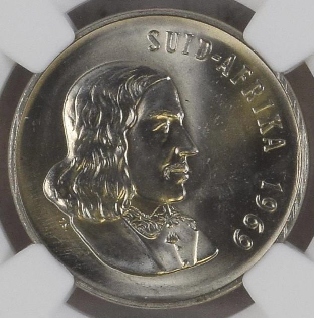 Lot 21: South Africa: Republic Nickel 50 Cents “Afrikaans” of 1969 MS 64 NGC.
