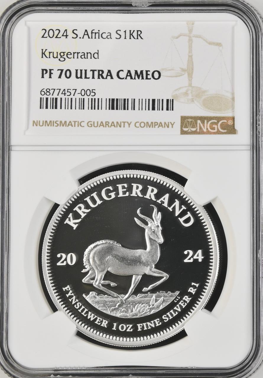 South Africa: Republic Silver Krugerrand 1oz of 2024 Proof 70 Ultra Cameo NGC.