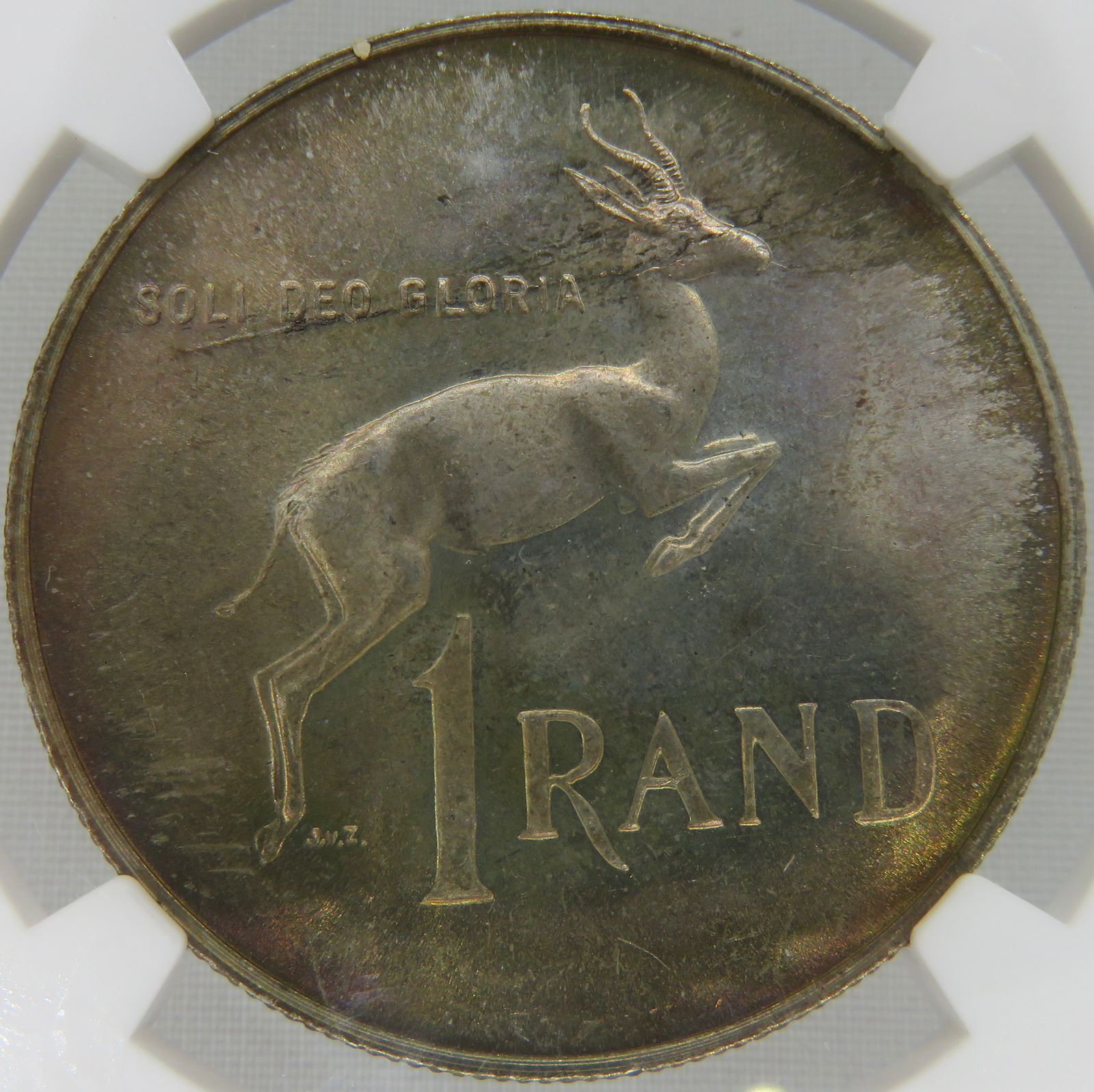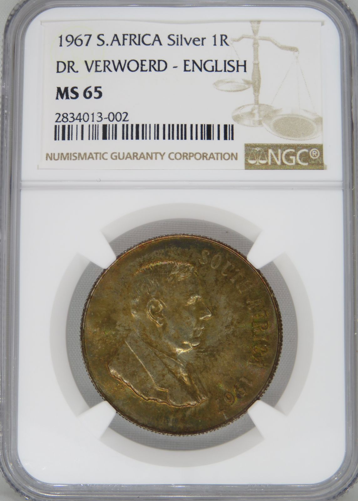 South Africa: Republic Silver R1 “Dr Verwoerd – English” of 1967 MS 65 NGC.