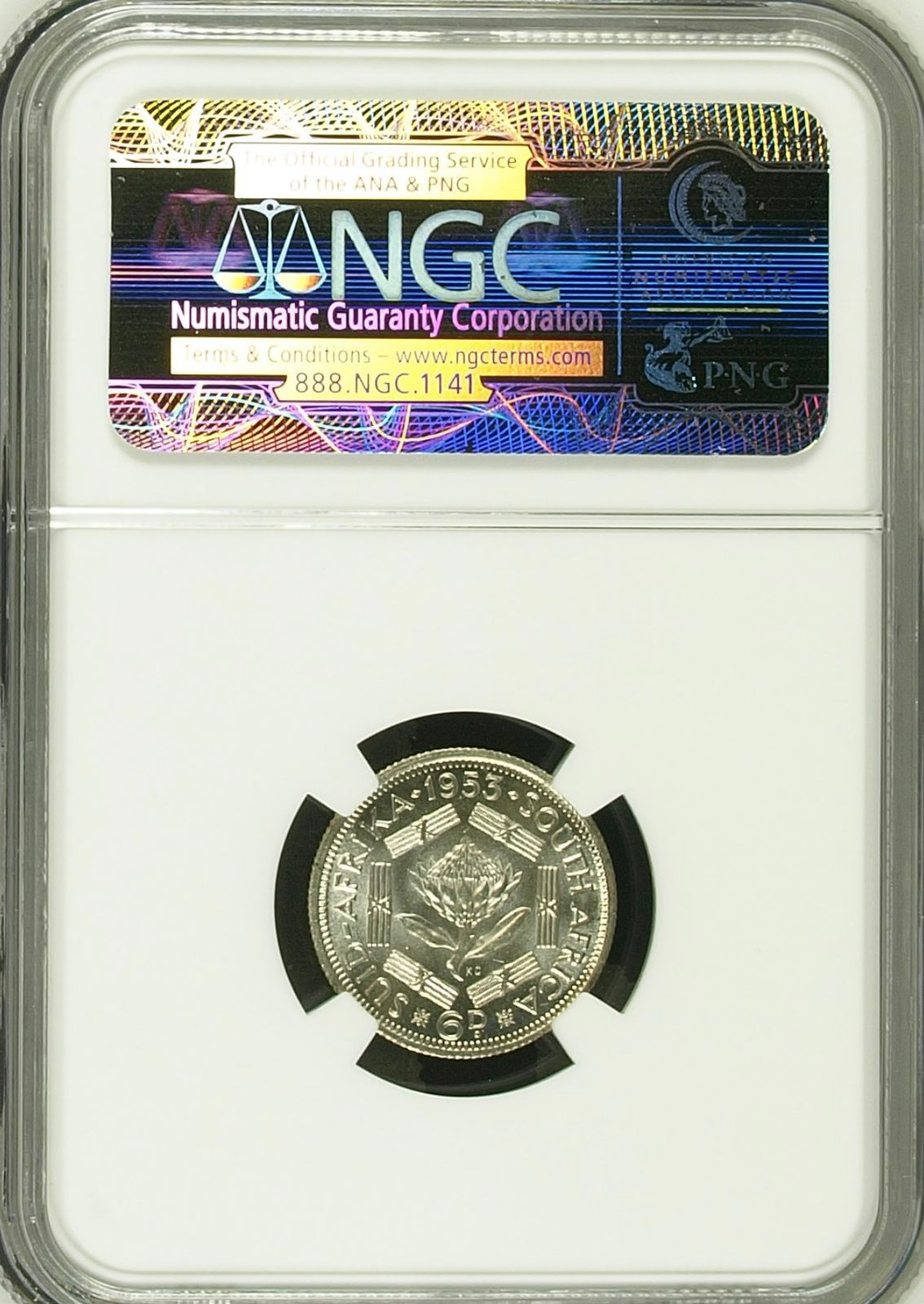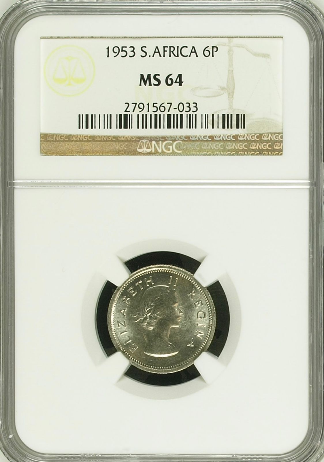 South Africa: Union Elizabeth II Silver 6 Pence of 1953 MS 64 NGC.