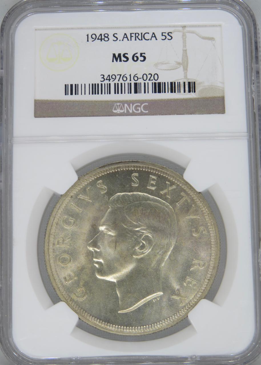 South Africa: Union George VI silver 5 shillings (crown) of 1948 MS 65 NGC.
