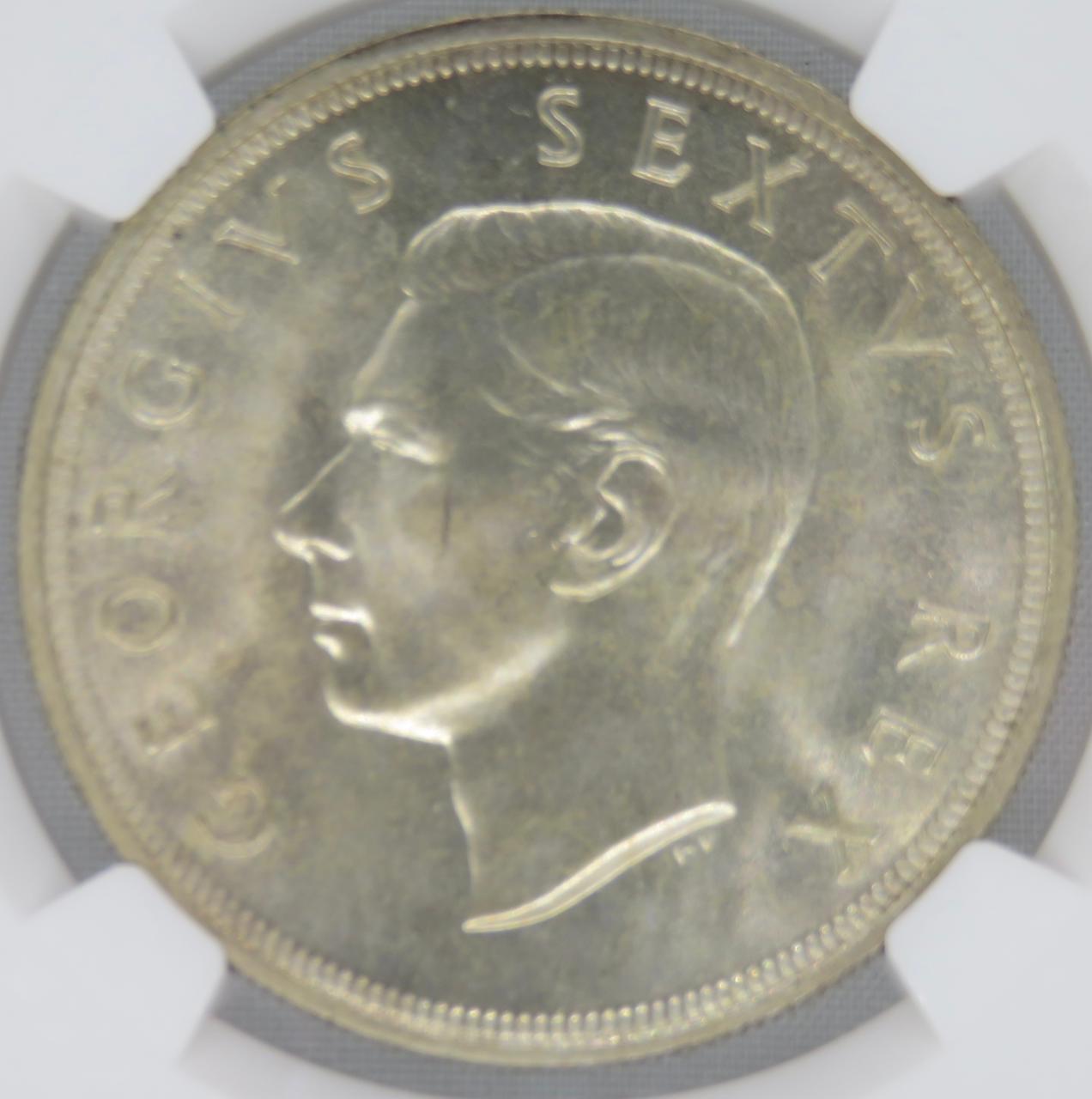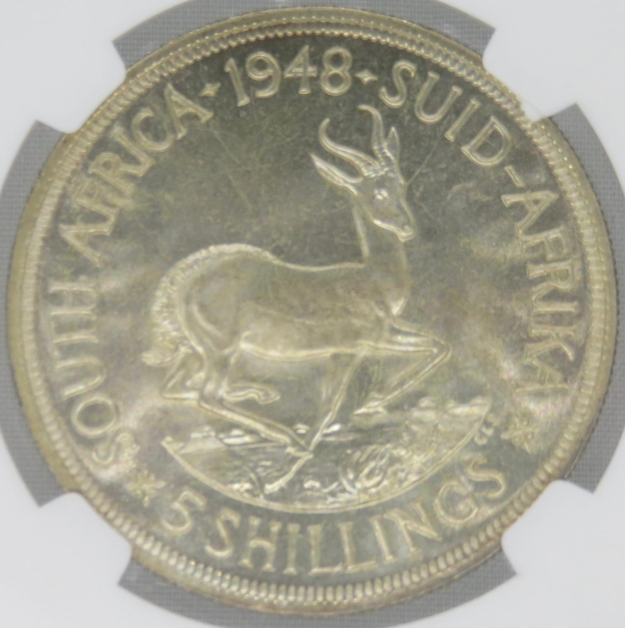 Lot 21: South Africa: Union George VI silver 5 shillings (crown) of 1948 MS 65 NGC.