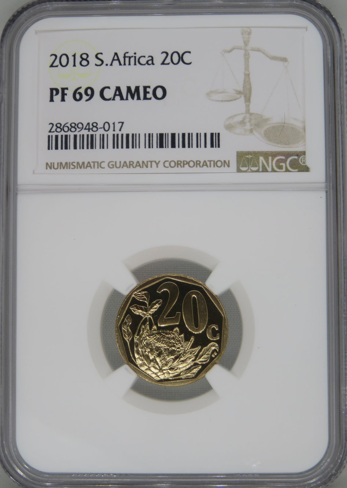 South Africa: Republic bronze plated steel 20 cents of 2018 Proof 69 Cameo NGC.