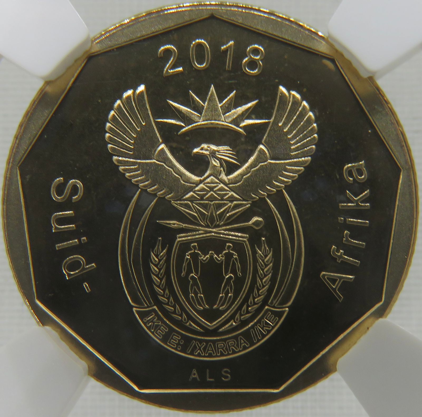 Lot 22: South Africa: Republic bronze plated steel 20 cents of 2018 Proof 69 Cameo NGC.