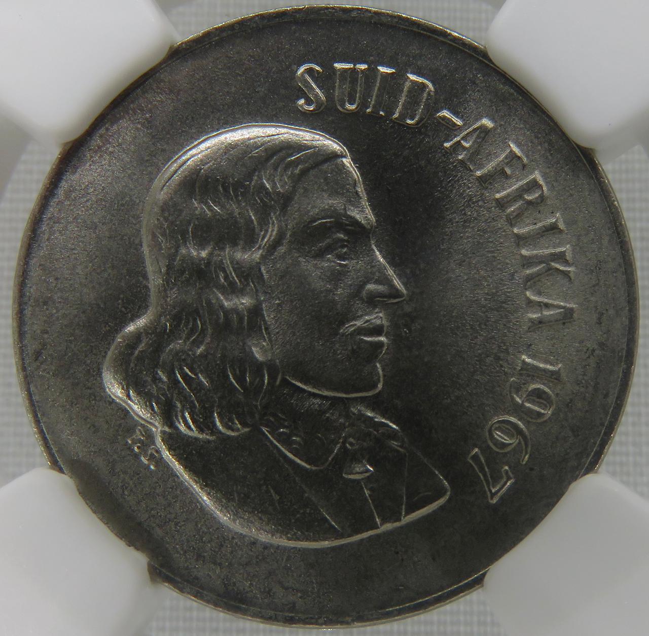 South Africa: Republic Nickel 10 cents “Afrikaans” of 1967 MS 67 NGC.