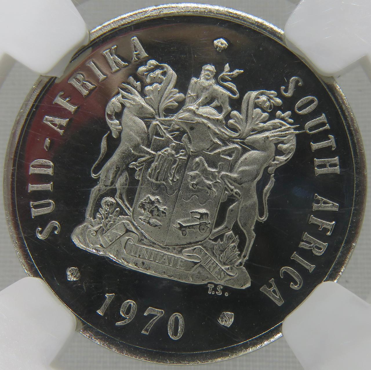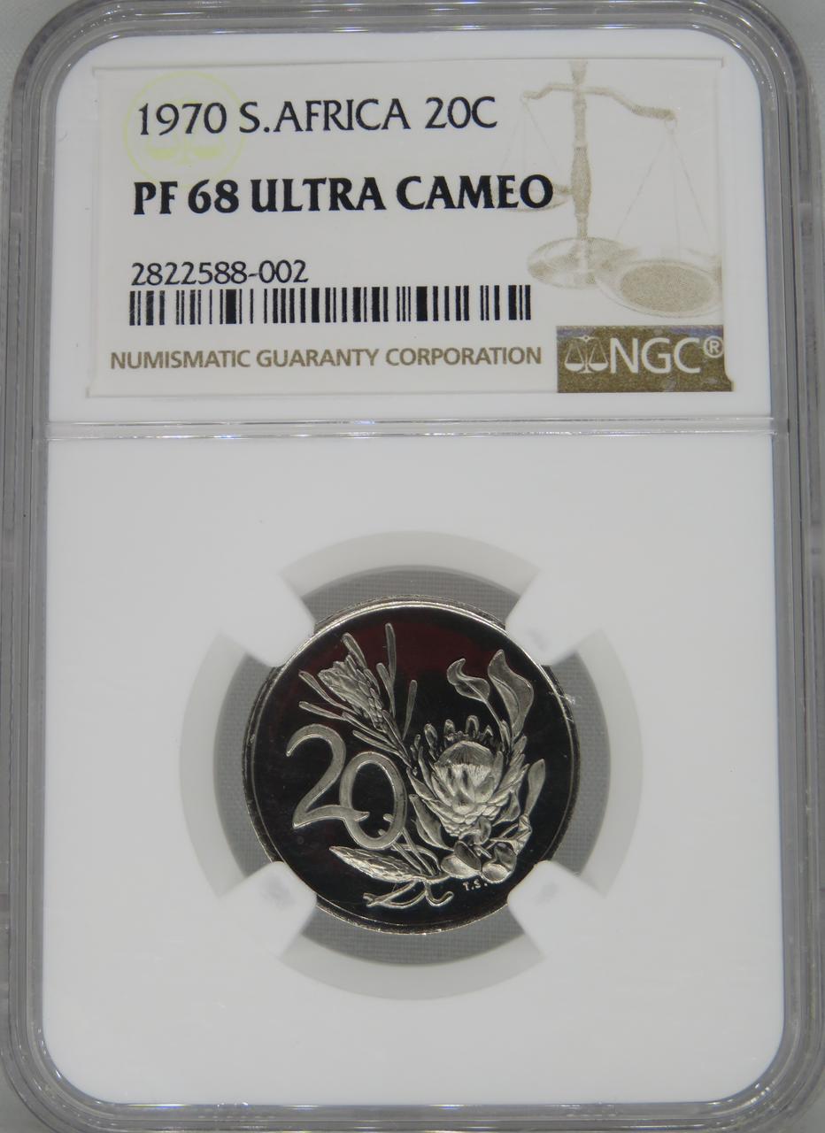 Lot 24: South Africa: Republic Nickel 20 cents of 1970 Proof 68 NGC.