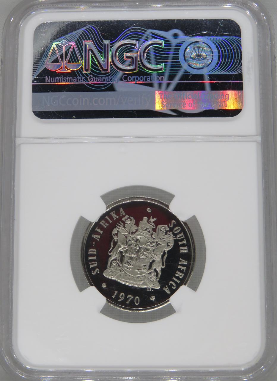 South Africa: Republic Nickel 20 cents of 1970 Proof 68 NGC.