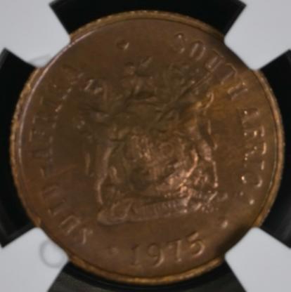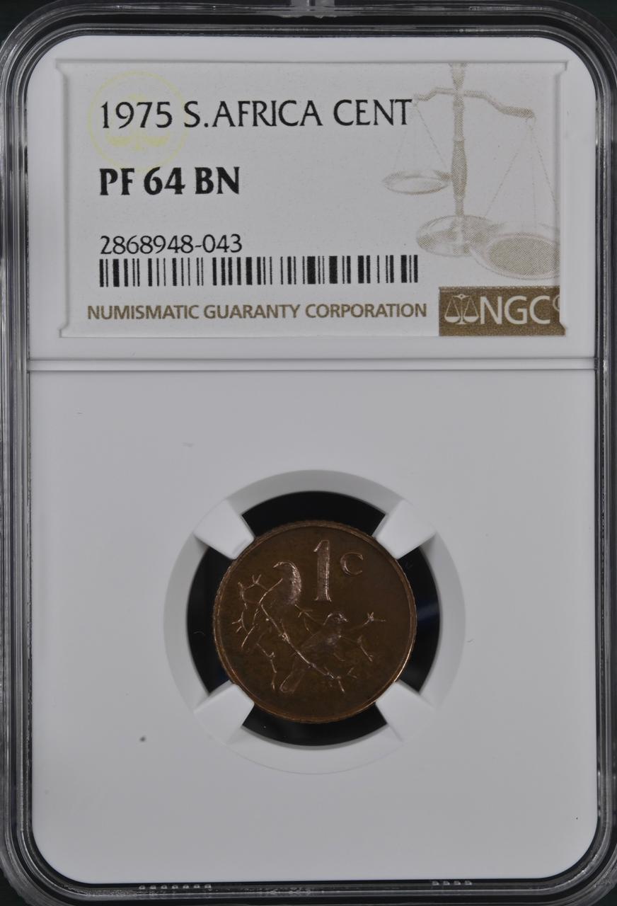 South Africa: Republic bronze cent of 1975 Proof 64 Brown NGC.