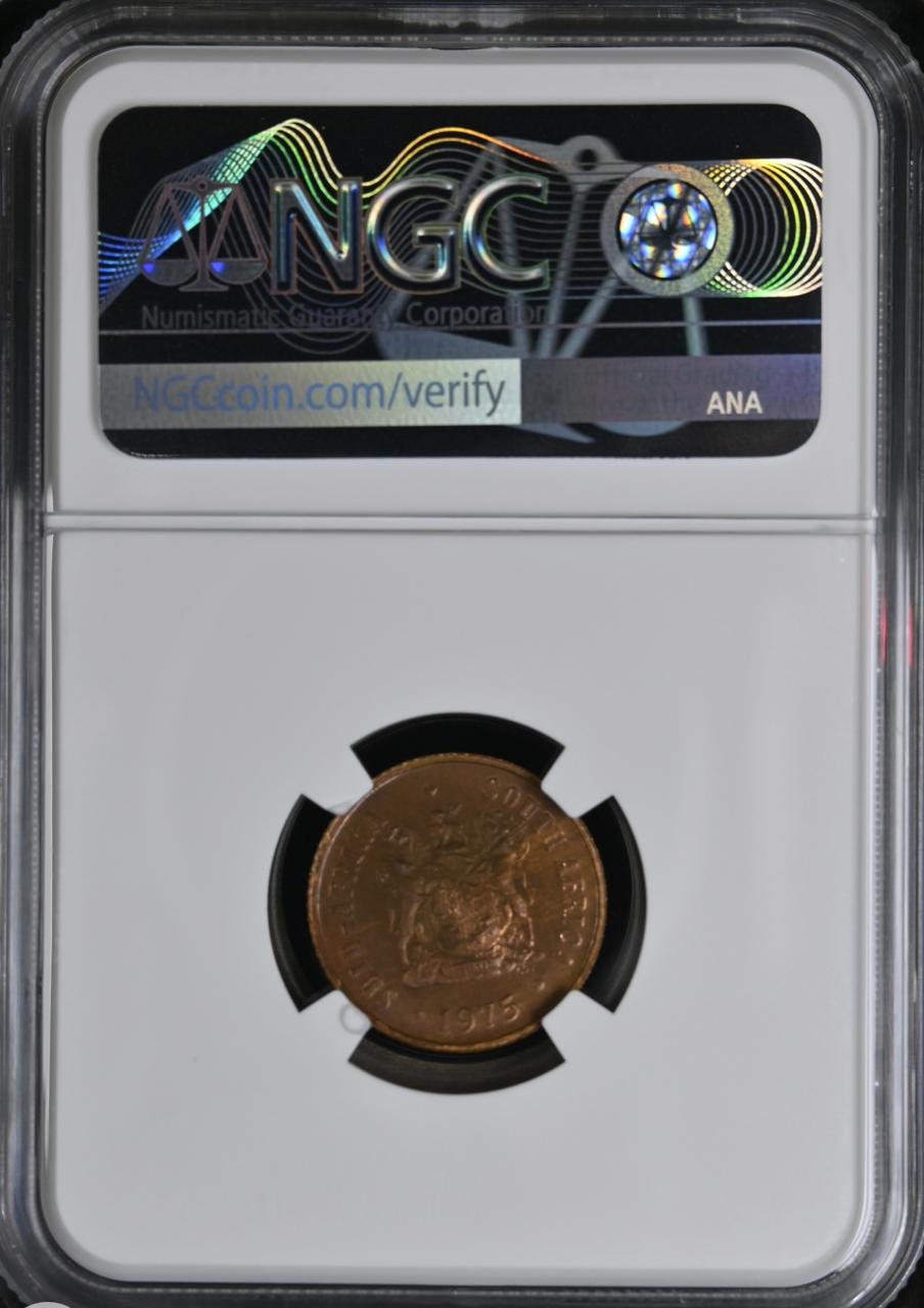 Lot 25: South Africa: Republic bronze cent of 1975 Proof 64 Brown NGC.