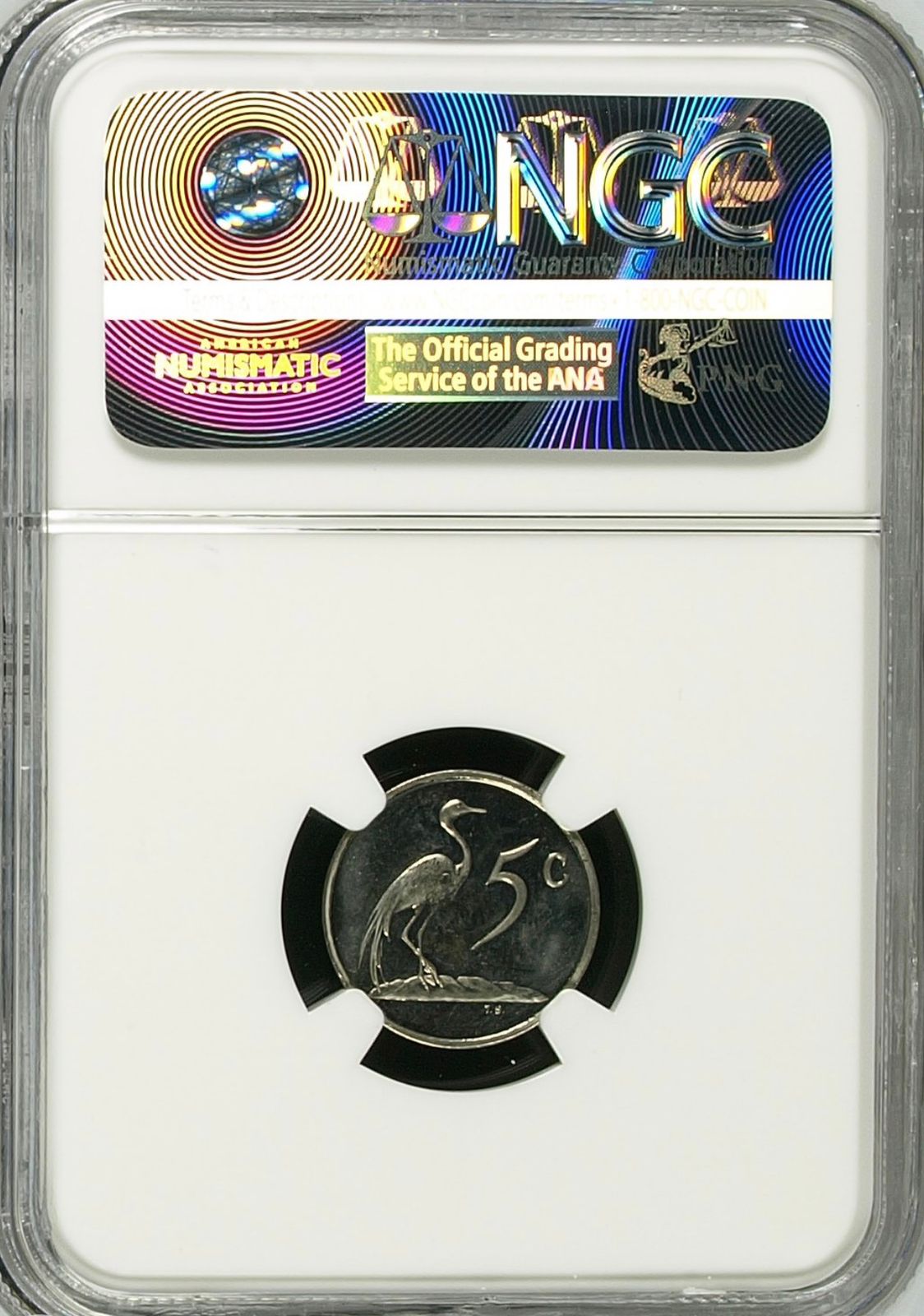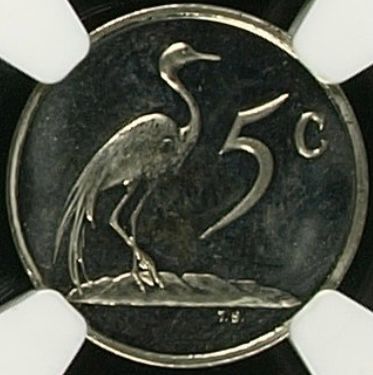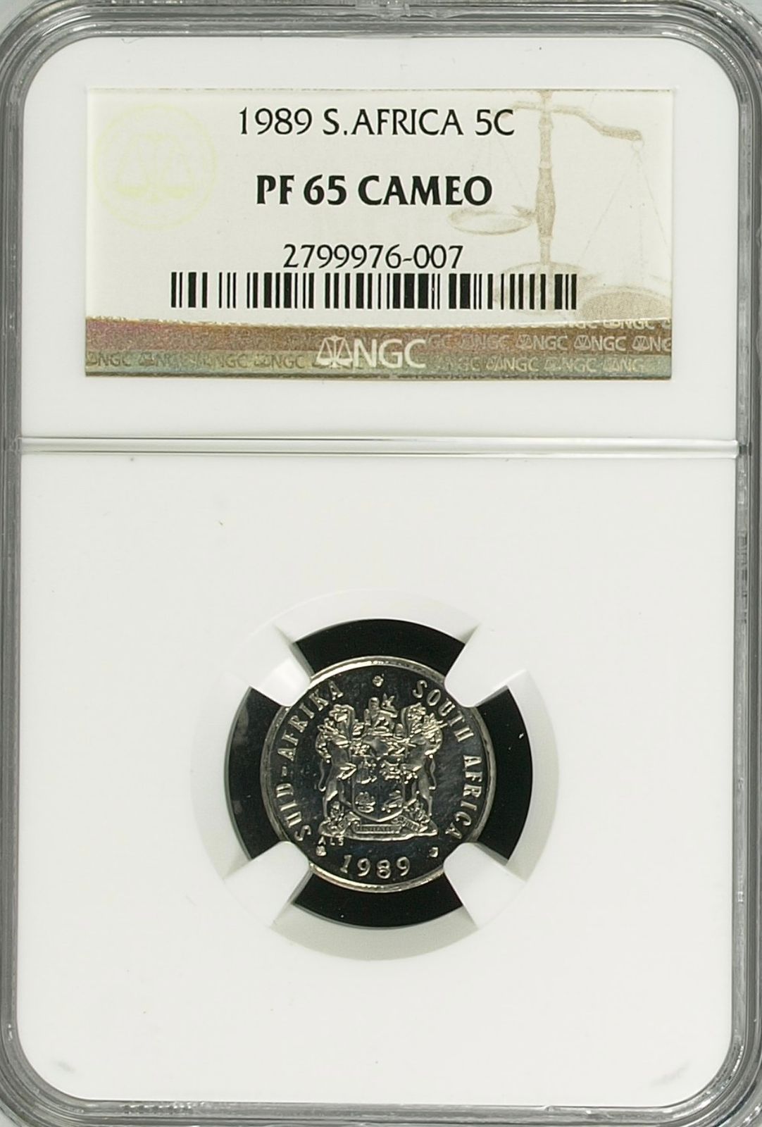 Lot 25: South Africa: Republic Nickel 5 cents of 1989 Proof 65 Cameo NGC.