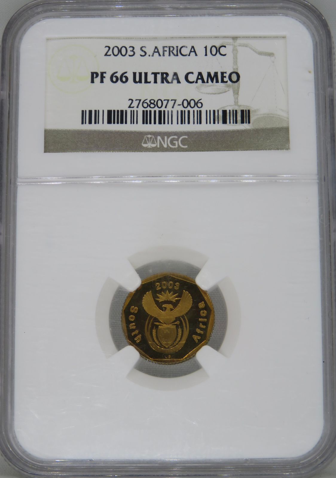 South Africa: Republic bronze plated steel 10 cents of 2003 Proof 66 Ultra Cameo NGC.