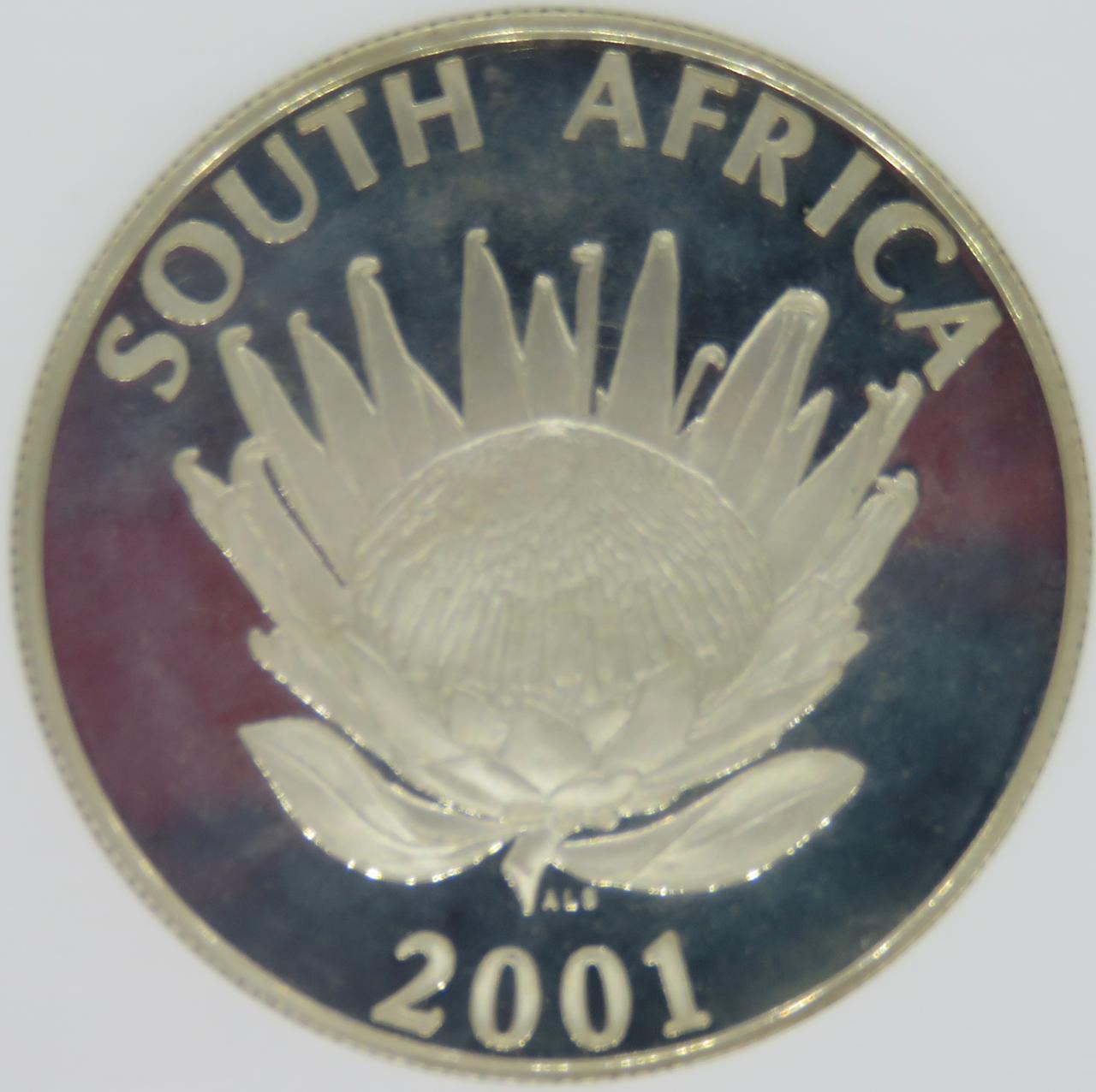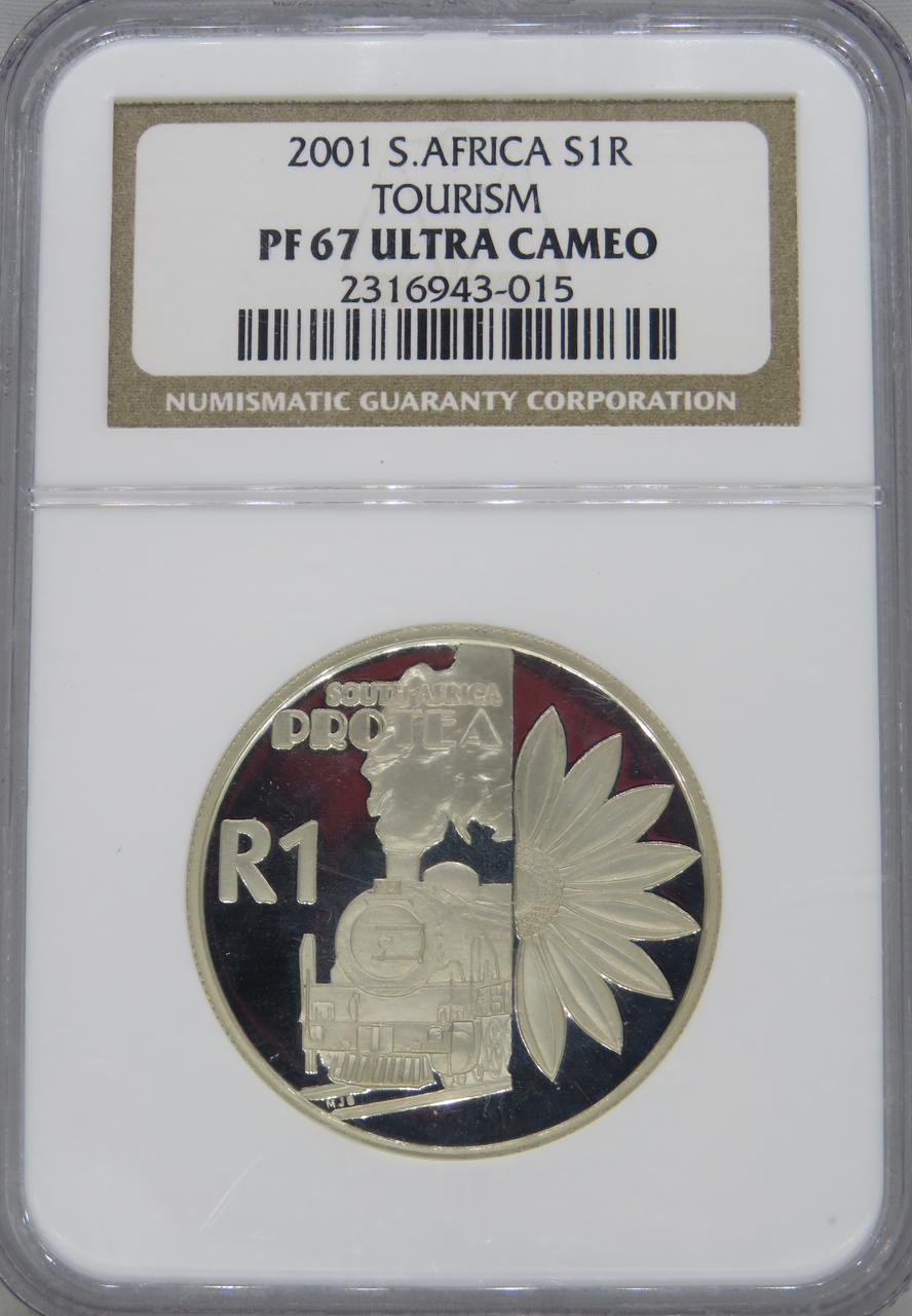 Lot 27: South Africa: Republic R1 Silver “Tourism” of 2001 PF 67 NGC. Proof Mintage: 1784. Hern’s Price Proof: R1,200. Sold @ R1,000.