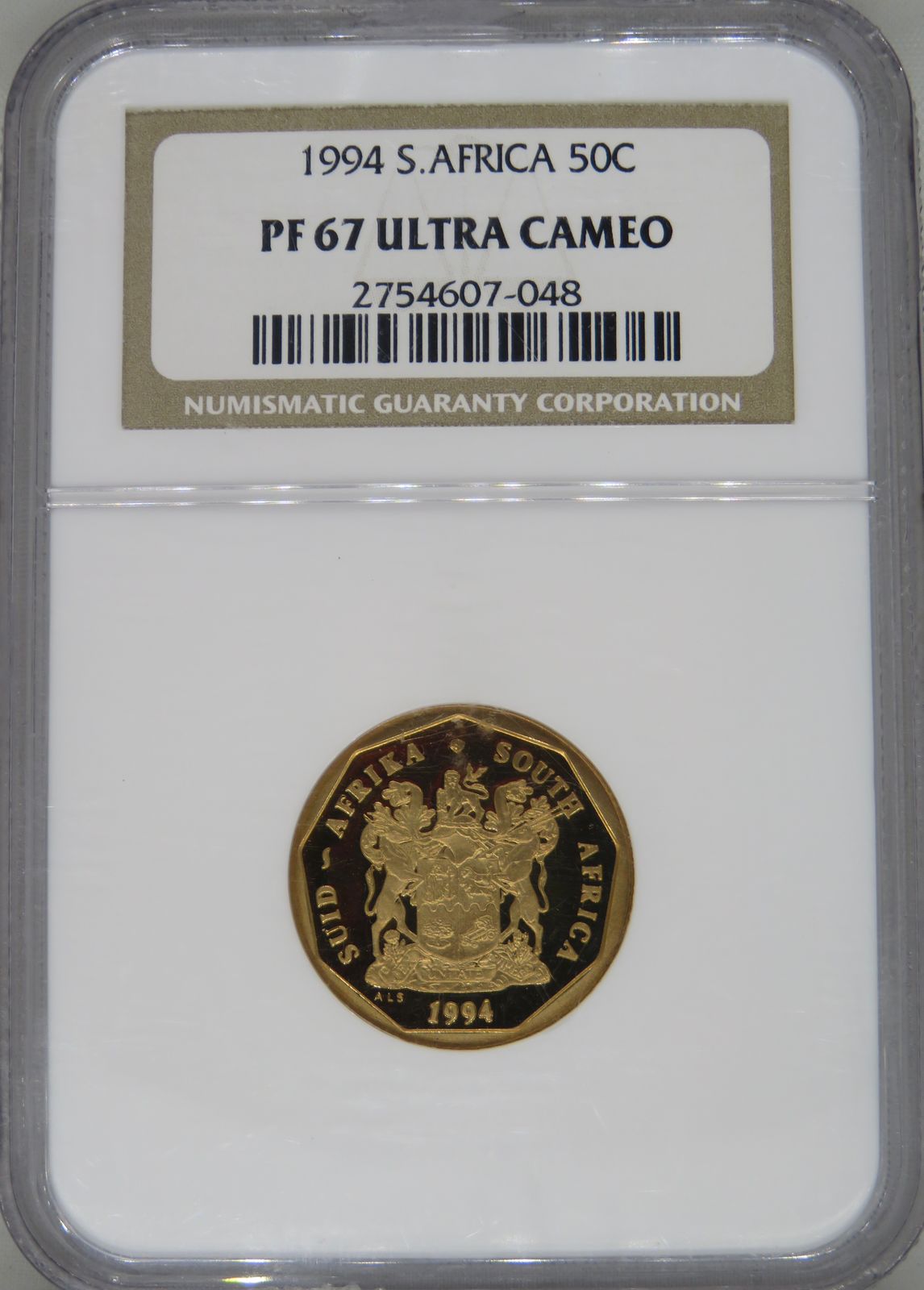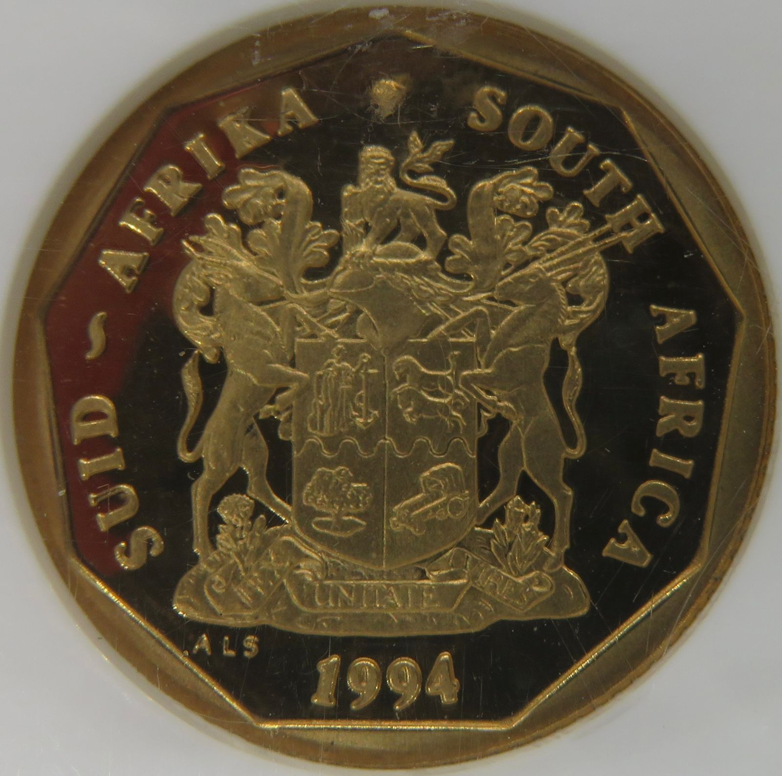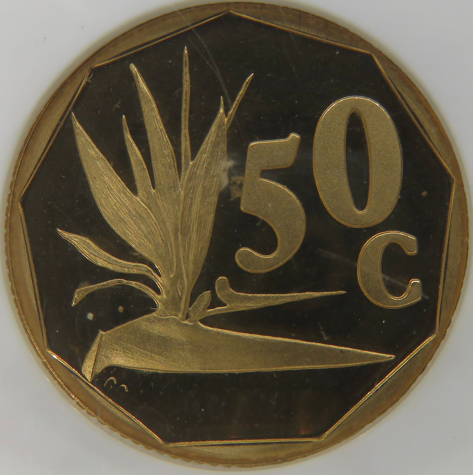 South Africa: Republic bronze plated steel 50 cents of 1994 Proof 67 NGC.