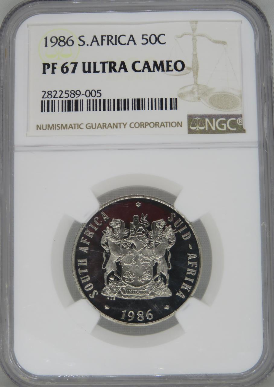 South Africa: Republic Nickel 50 cents of 1986 Proof 67 NGC.