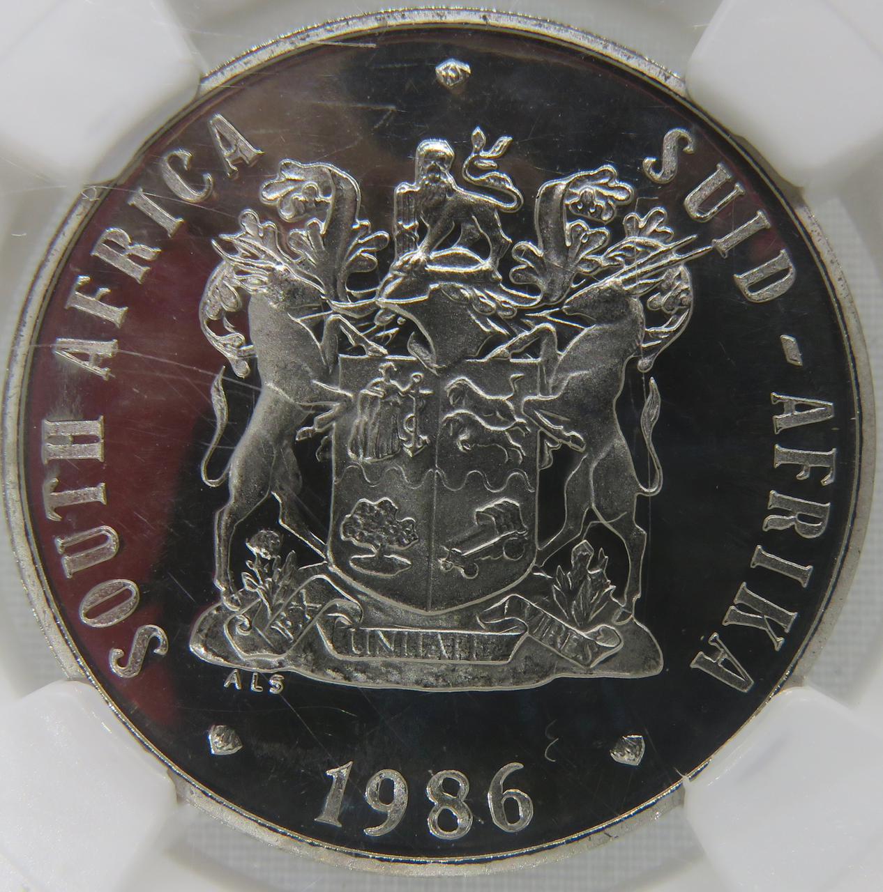 Lot 29: South Africa: Republic Nickel 50 cents of 1986 Proof 67 NGC.