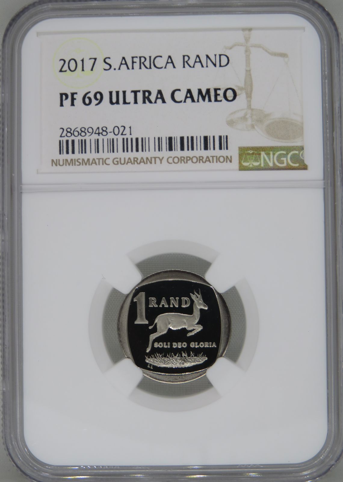 South Africa: Republic nickel plated copper R1 of 2017 Proof 69 NGC.