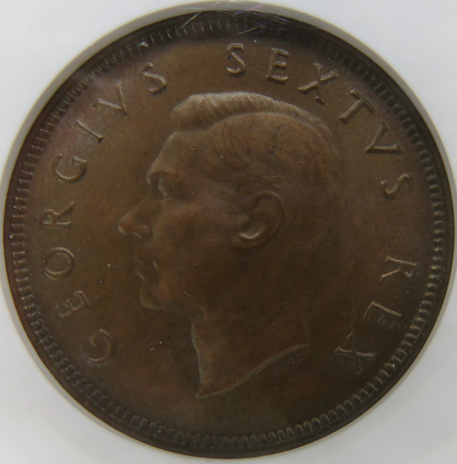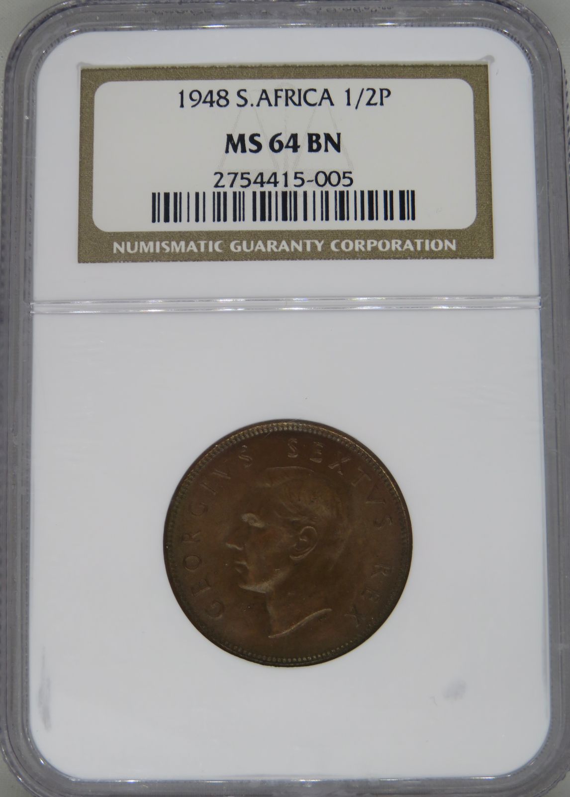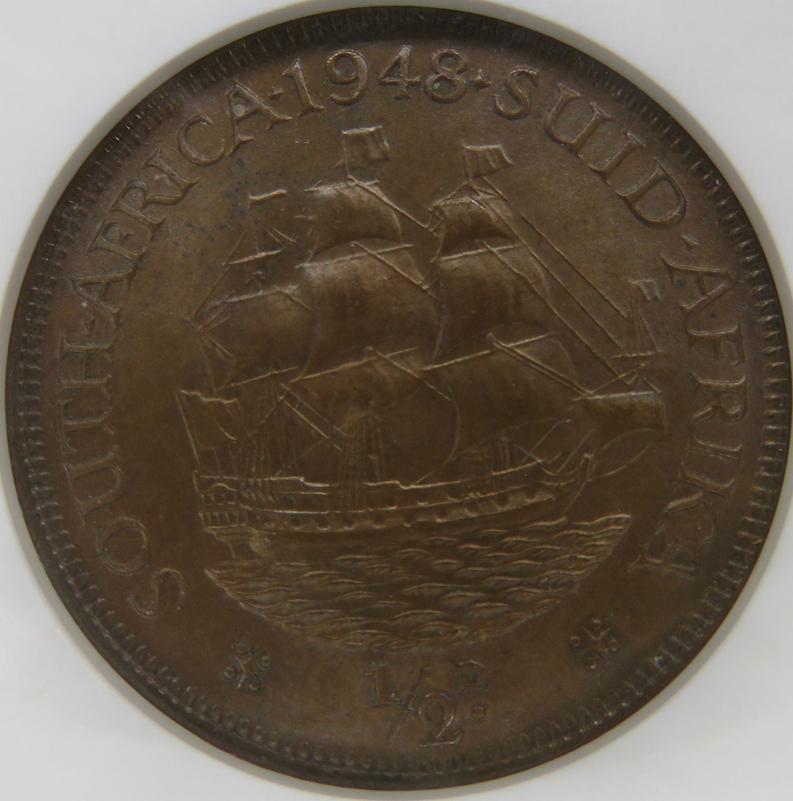 South Africa: Union George VI bronze half penny of 1948 MS 64 Brown NGC.