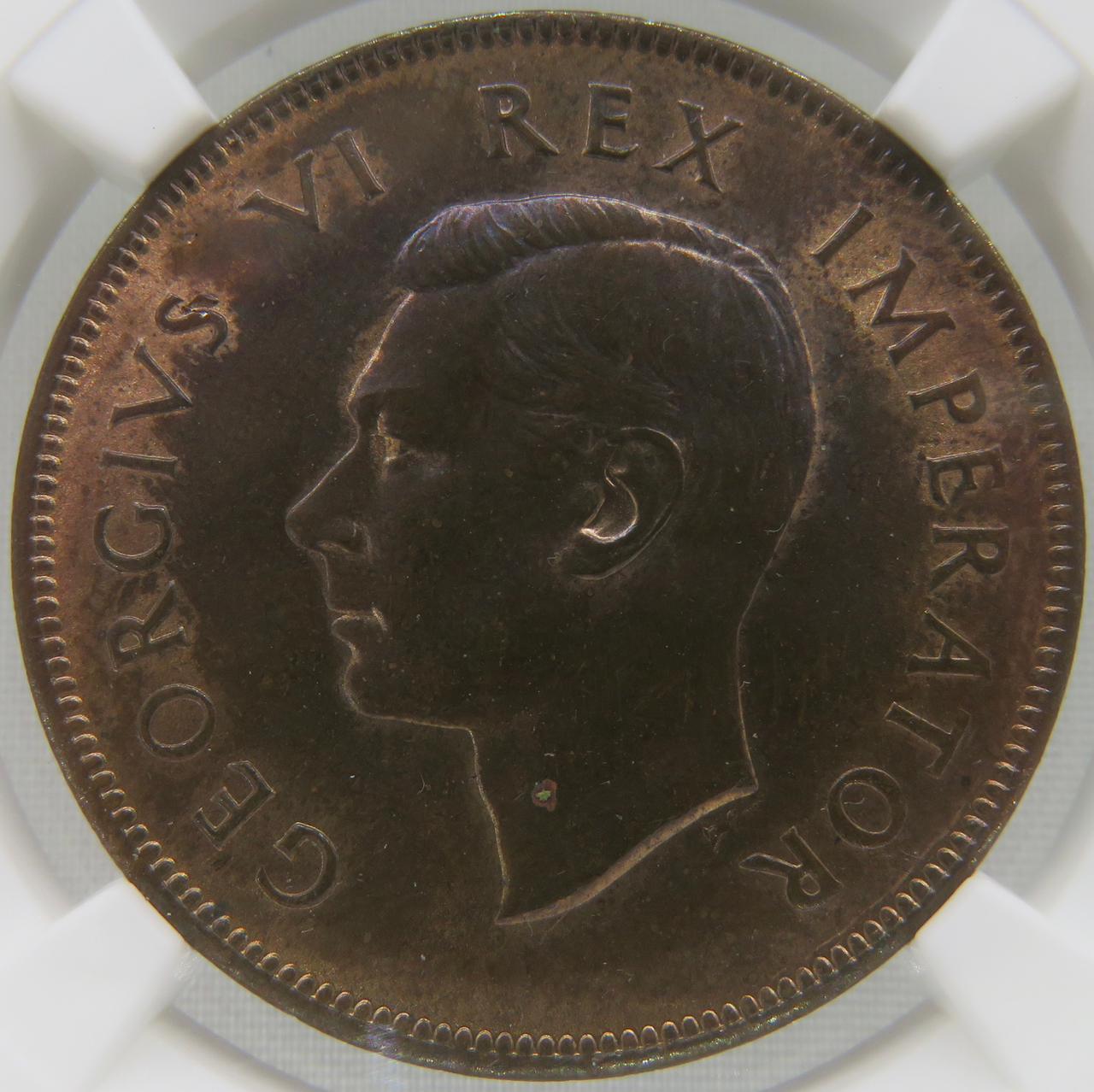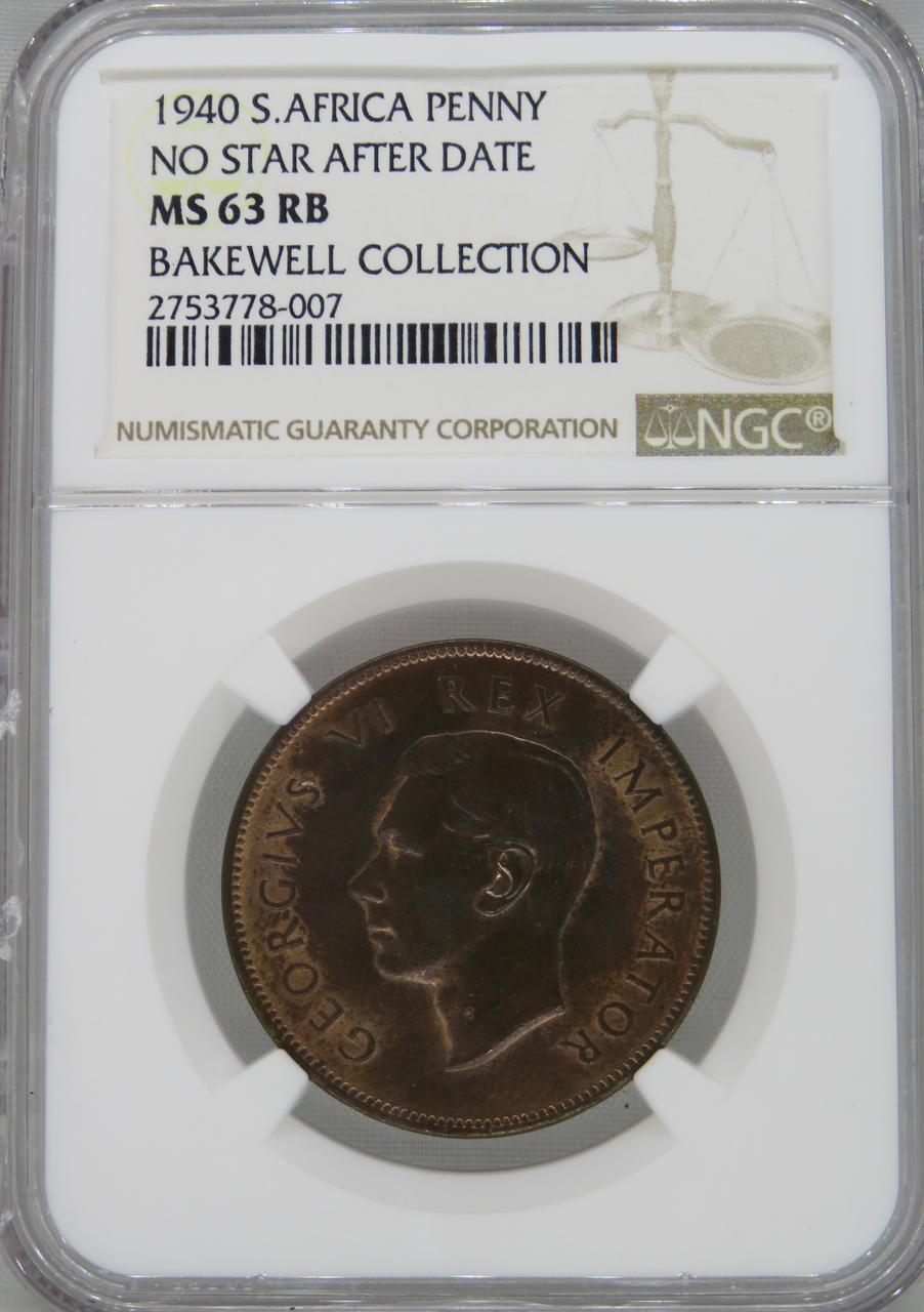 Lot 3: South Africa: Union George VI Penny of 1940 MS 63 Red & Brown NGC.