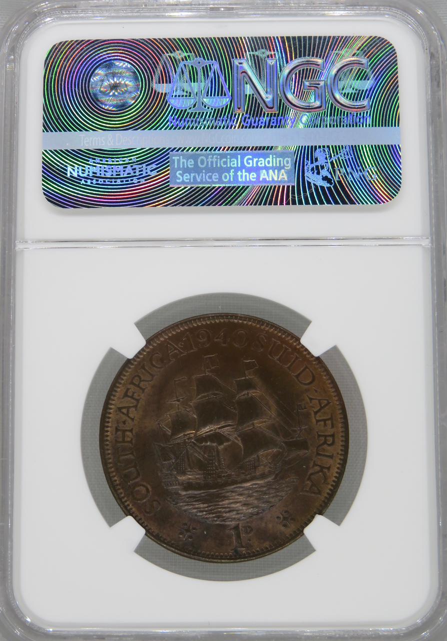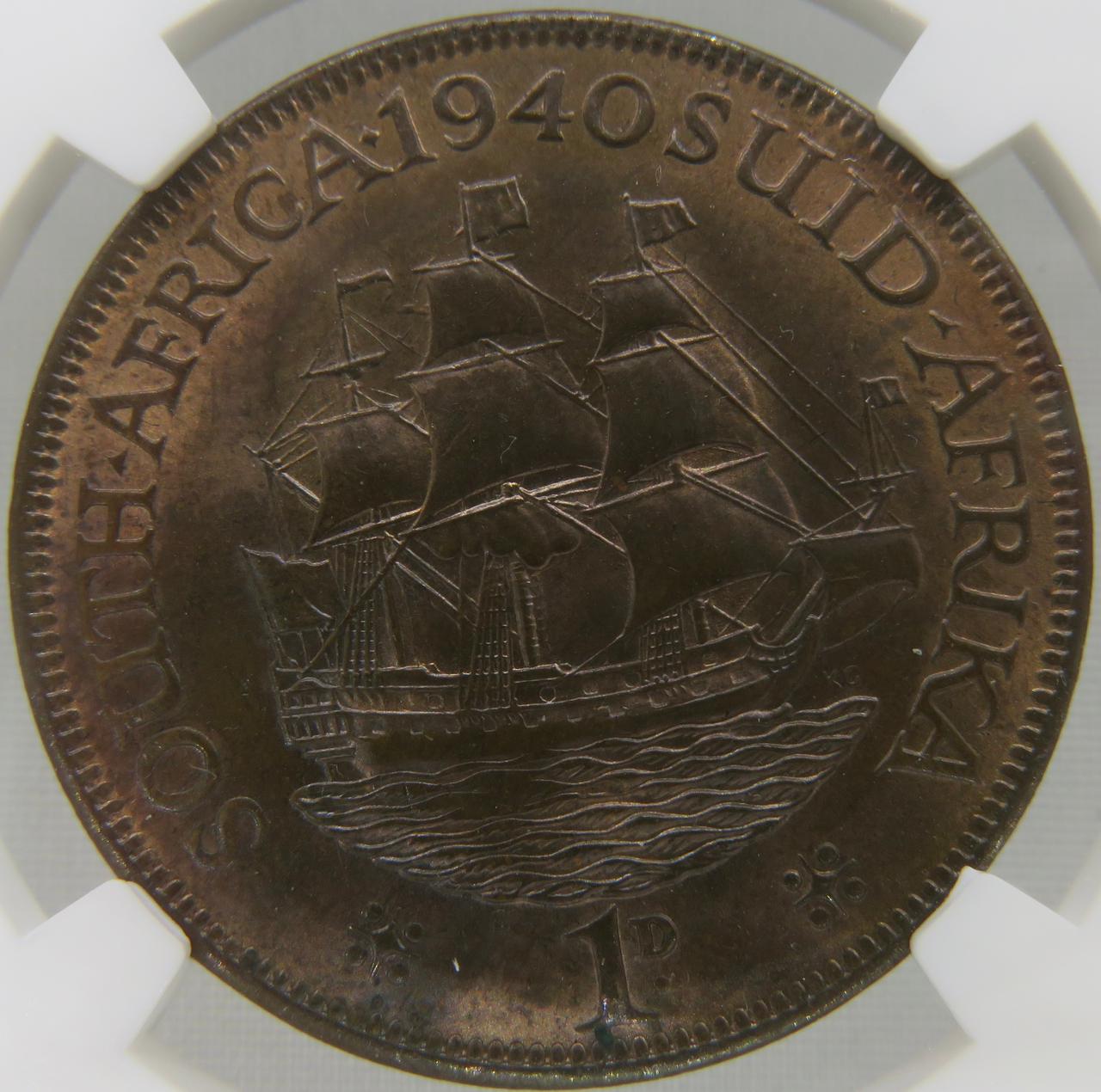 South Africa: Union George VI Penny of 1940 MS 63 Red & Brown NGC.