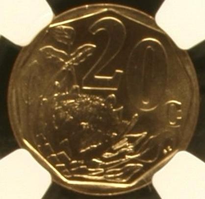 South Africa: Republic bronze plated steel 20 cents of 2000 MS 66 NGC.