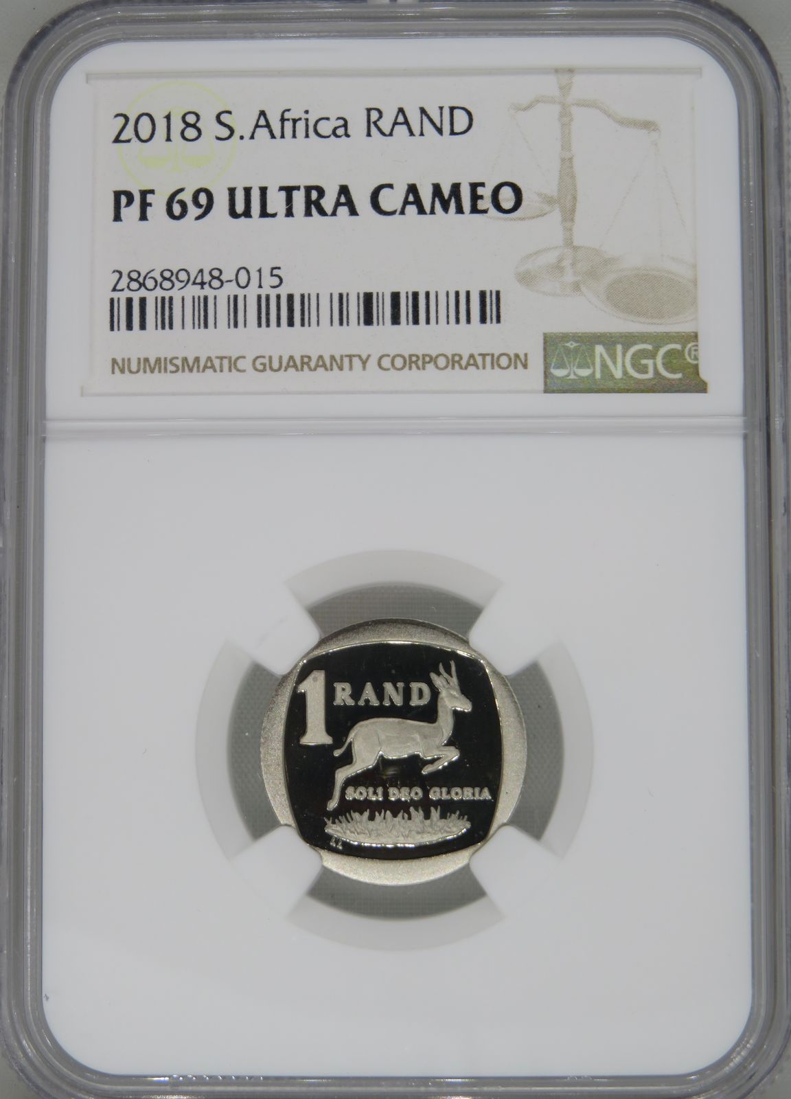 South Africa: Republic nickel plated copper R1 of 2018 Proof 69 NGC.