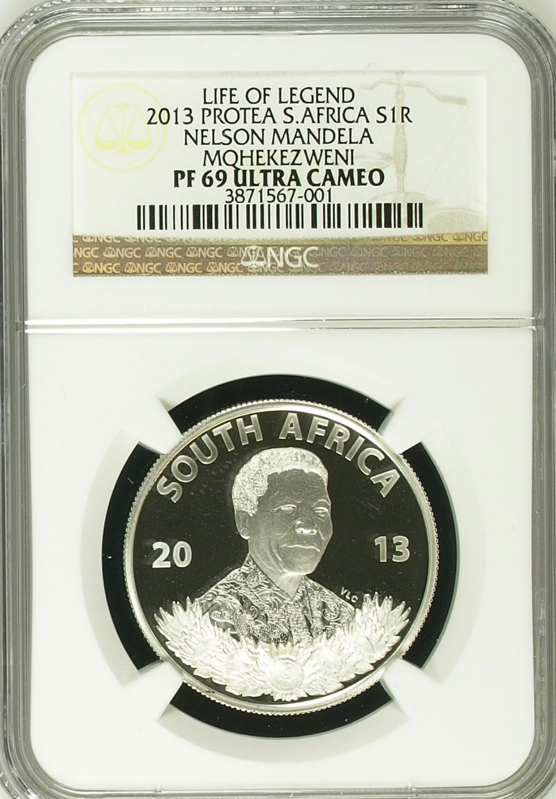 South Africa: Republic Protea Silver R1 “Mandela Life of a Legend – Mqhekezweni” of 2013 Proof 69 Ultra Cameo NGC.