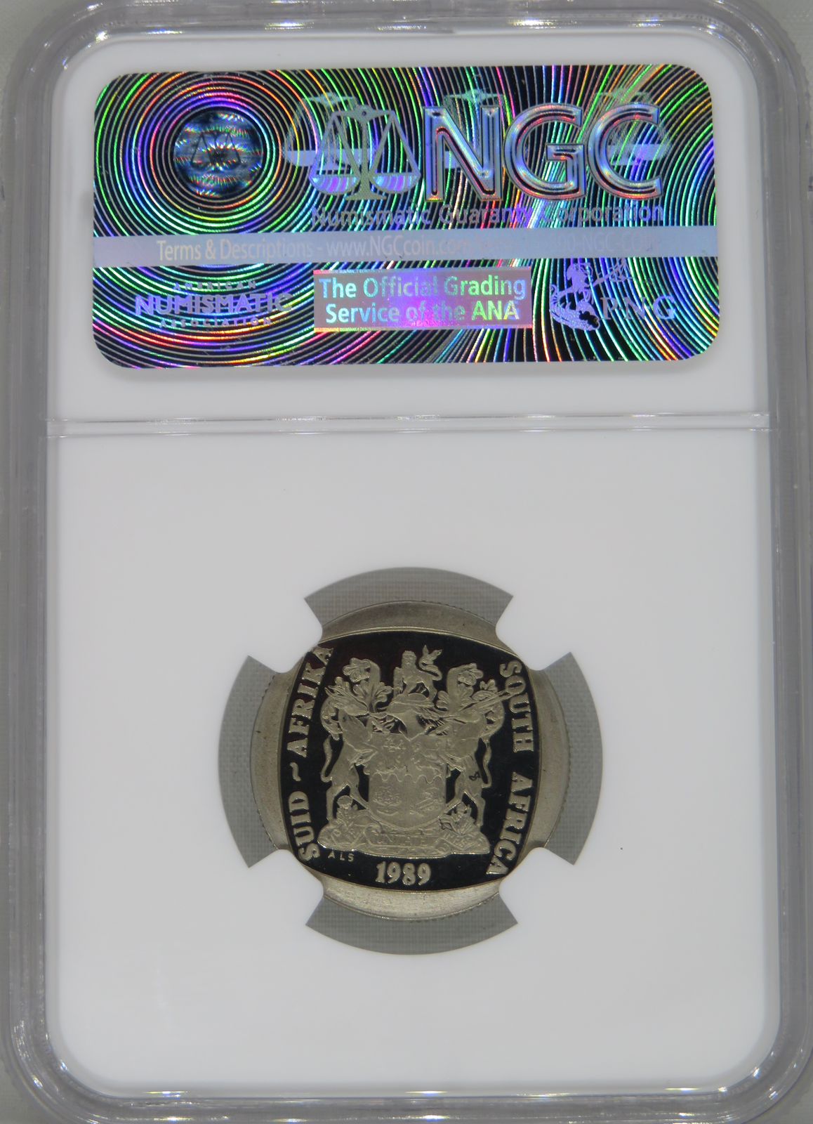 South Africa: Republic nickel plated copper R2 of 1989 Proof 67 NGC.