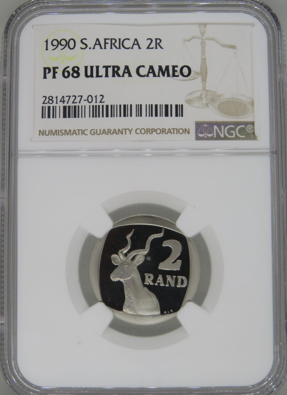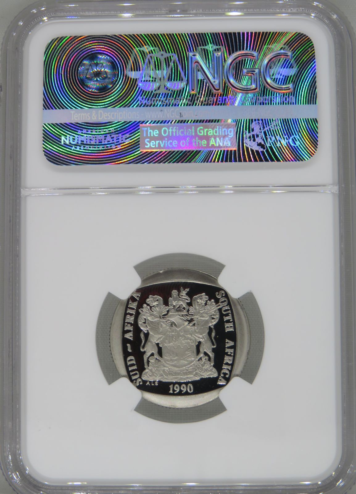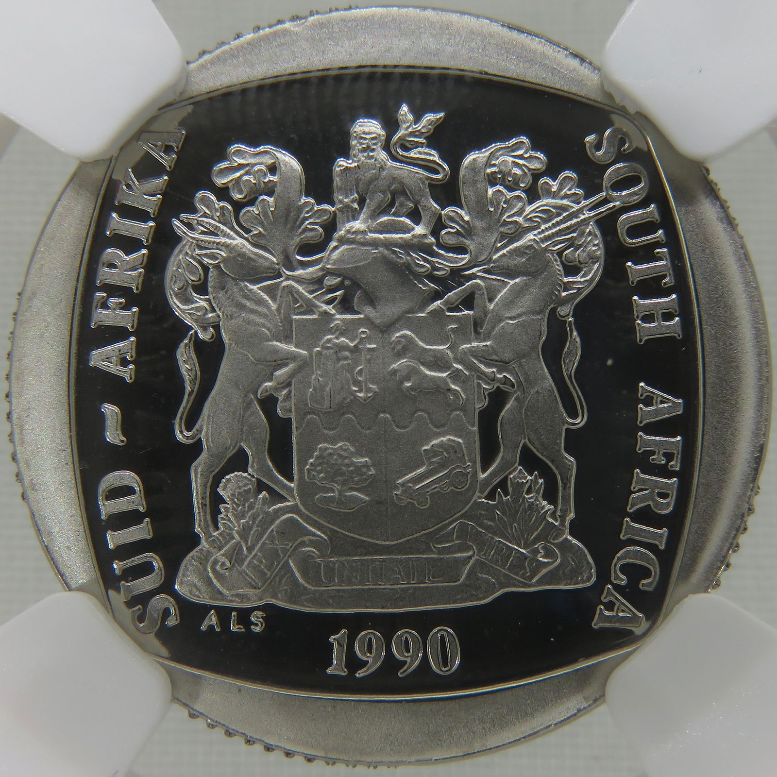 South Africa: Republic nickel plated copper R2 of 1990 Proof 68 NGC.