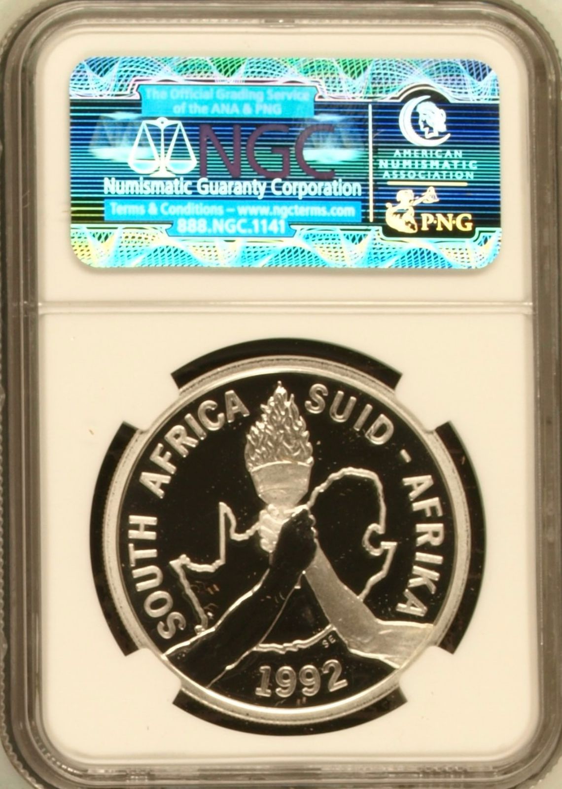 South Africa: Republic 1oz Silver R2 “Barcelona Olympics” of 1992 Proof 69 Ultra Cameo NGC.