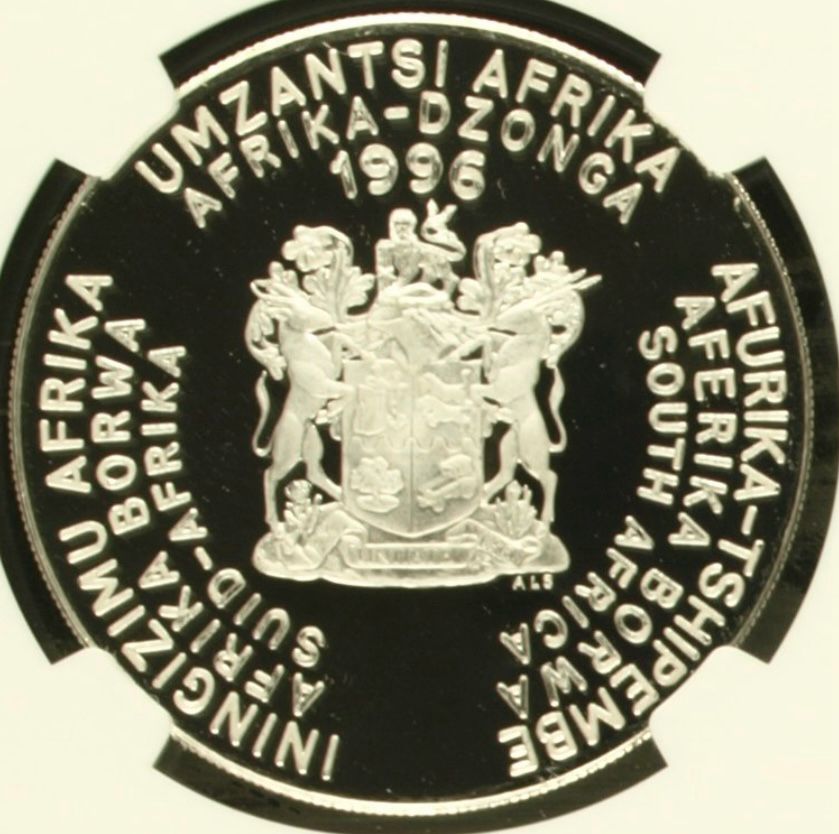 South Africa: Republic 1oz Silver R2 “African Football” of 1996 Proof 69 Ultra Cameo NGC.