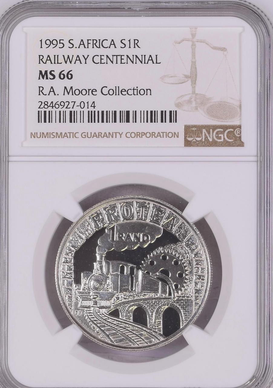 South Africa: Republic Protea Silver R1 “Railway Centennial” of 1995 MS 66 NGC.