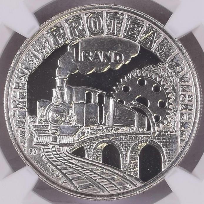 Lot 36: South Africa: Republic Protea Silver R1 “Railway Centennial” of 1995 MS 66 NGC.