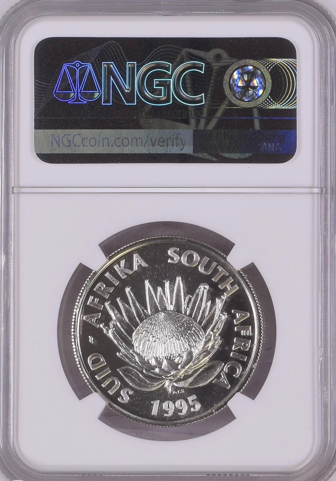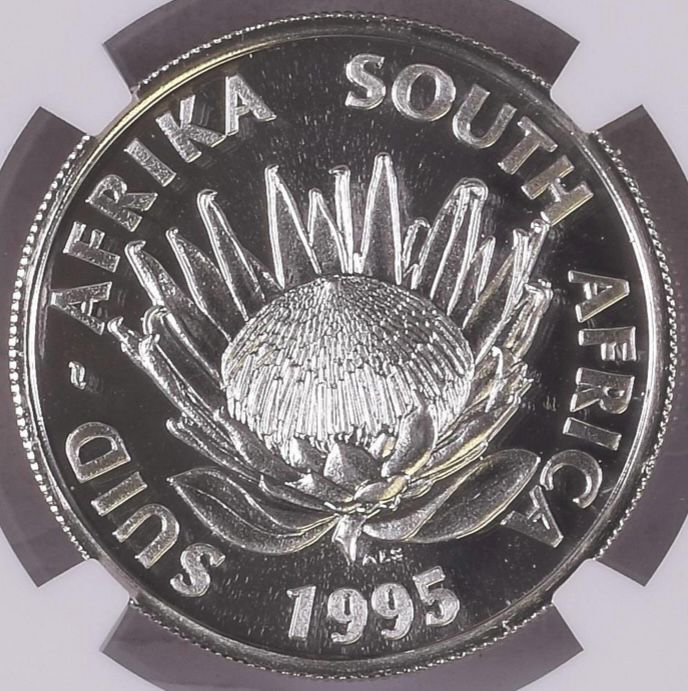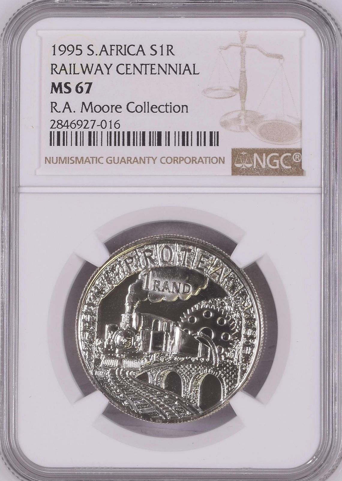 South Africa: Republic Protea Silver R1 “Railway Centennial” of 1995 MS 67 NGC.
