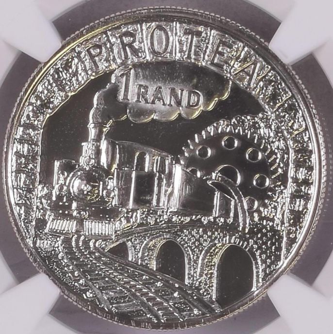 Lot 37: South Africa: Republic Protea Silver R1 “Railway Centennial” of 1995 MS 67 NGC.