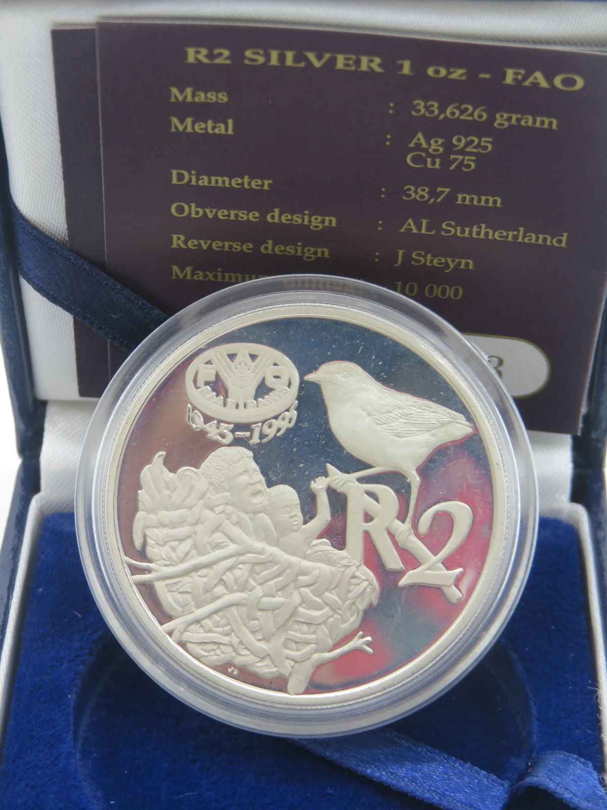 Lot 37: South Africa: Republic Silver R2 “Food and Agricultural Organisation Anniversary” of 1995.