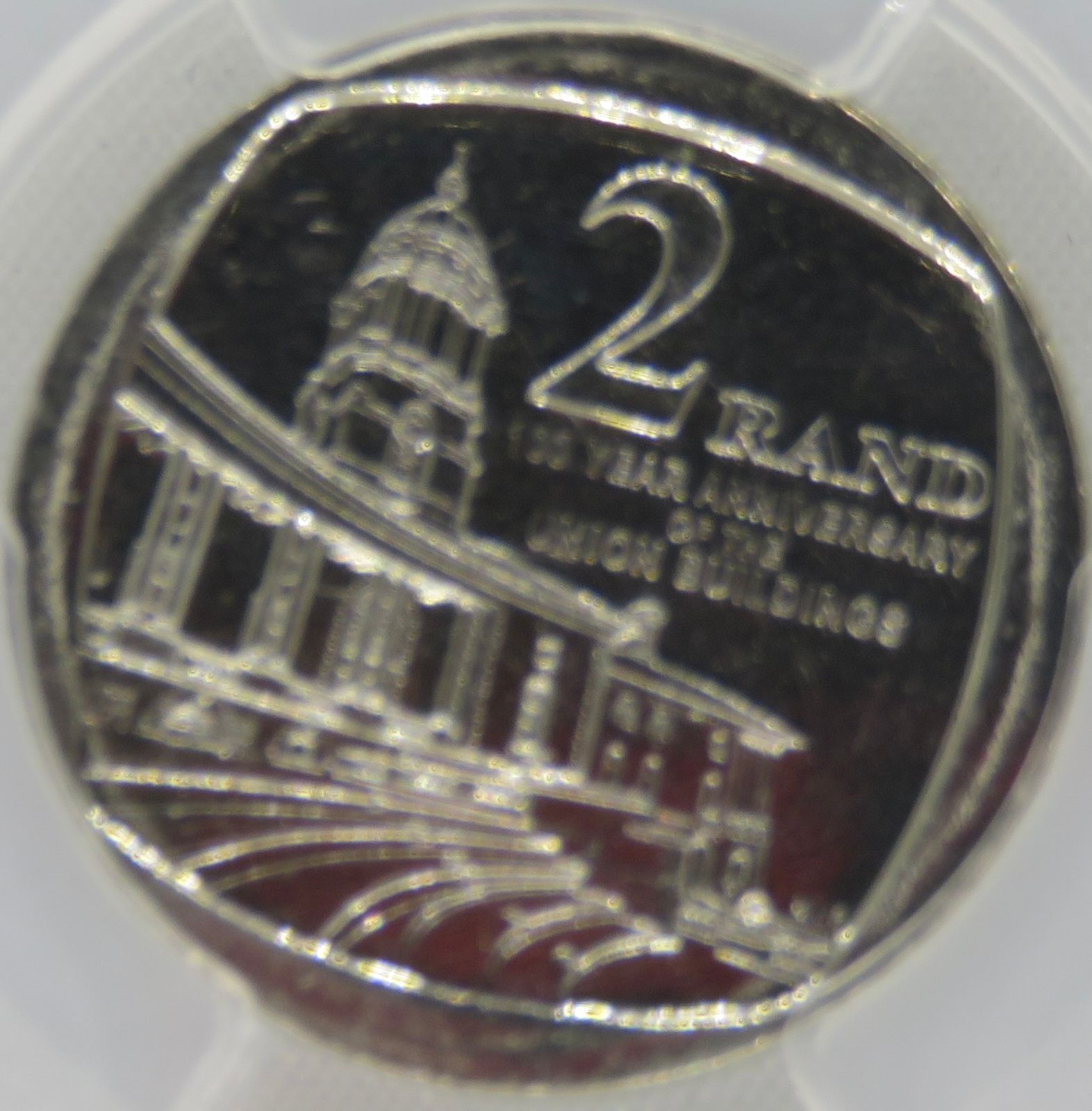 Lot 38: South Africa: Republic nickel plated copper R2 “100 Year Anniversary of the Union Buildings” of 2013 MS 64 PCGS.