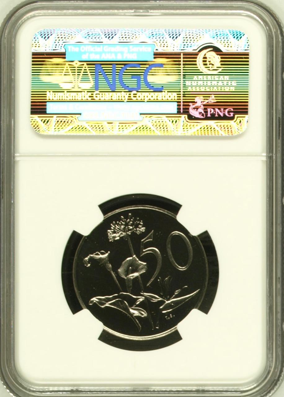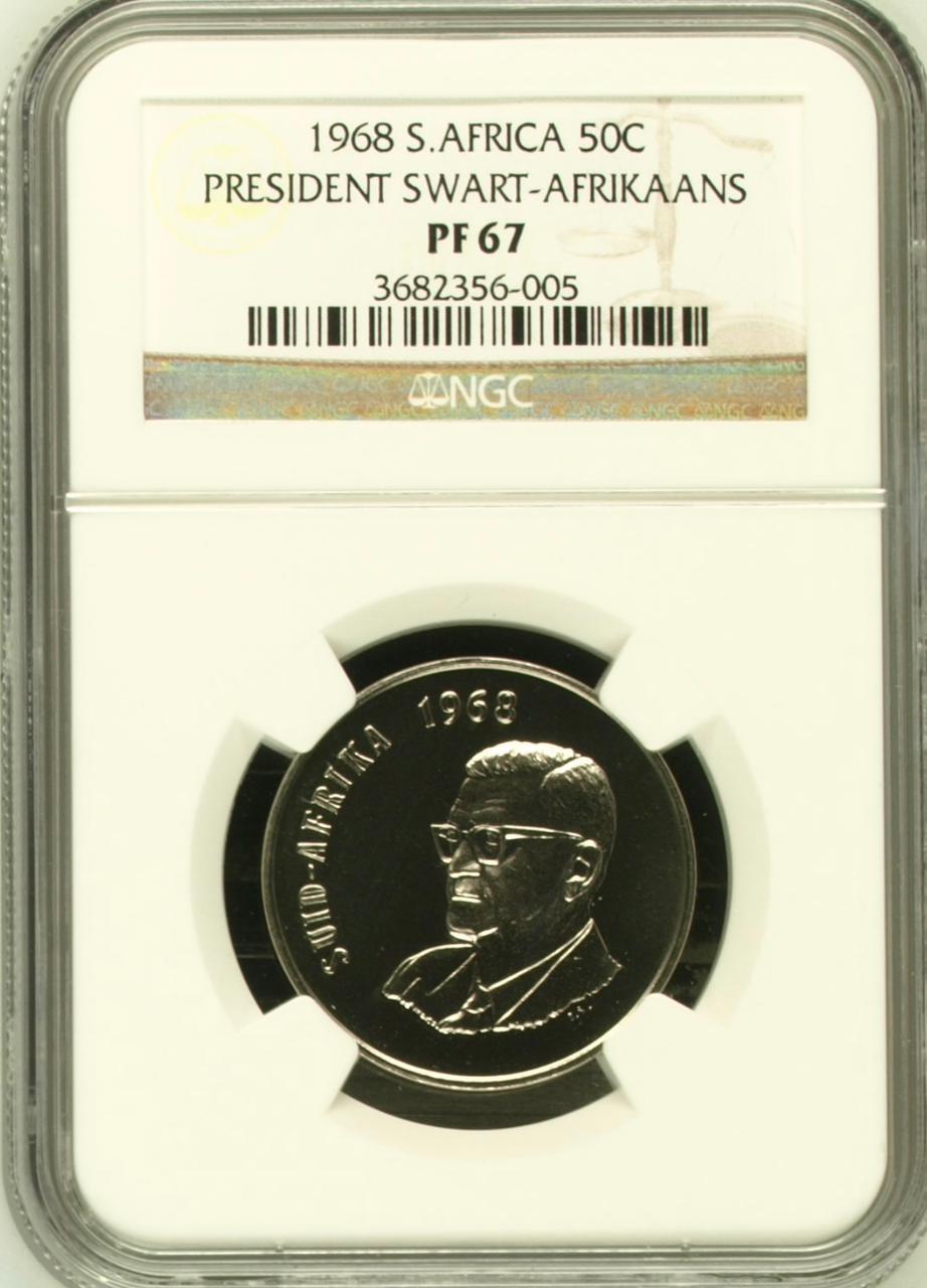 South Africa: Republic nickel 50 cents “President Swart – Afrikaans” of 1968 Proof 67 NGC.