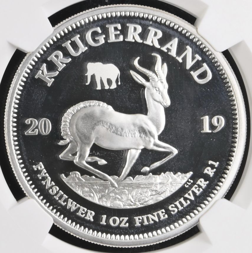 South Africa: Republic Silver Krugerrand 1oz Silver “Elephant Privy” mintmark of 2019 Proof 69 NGC.