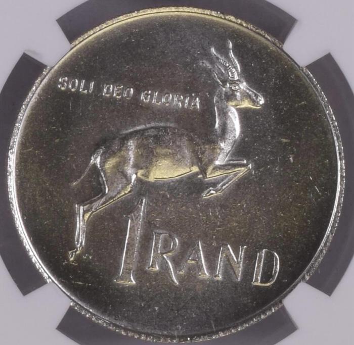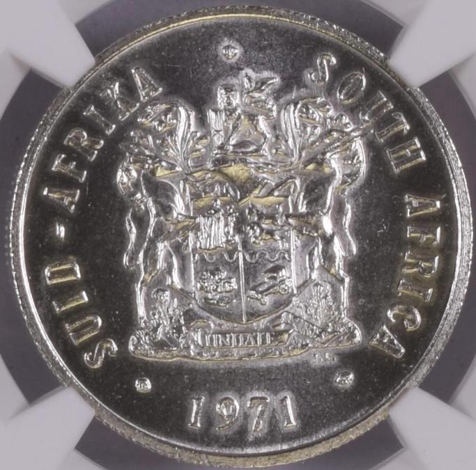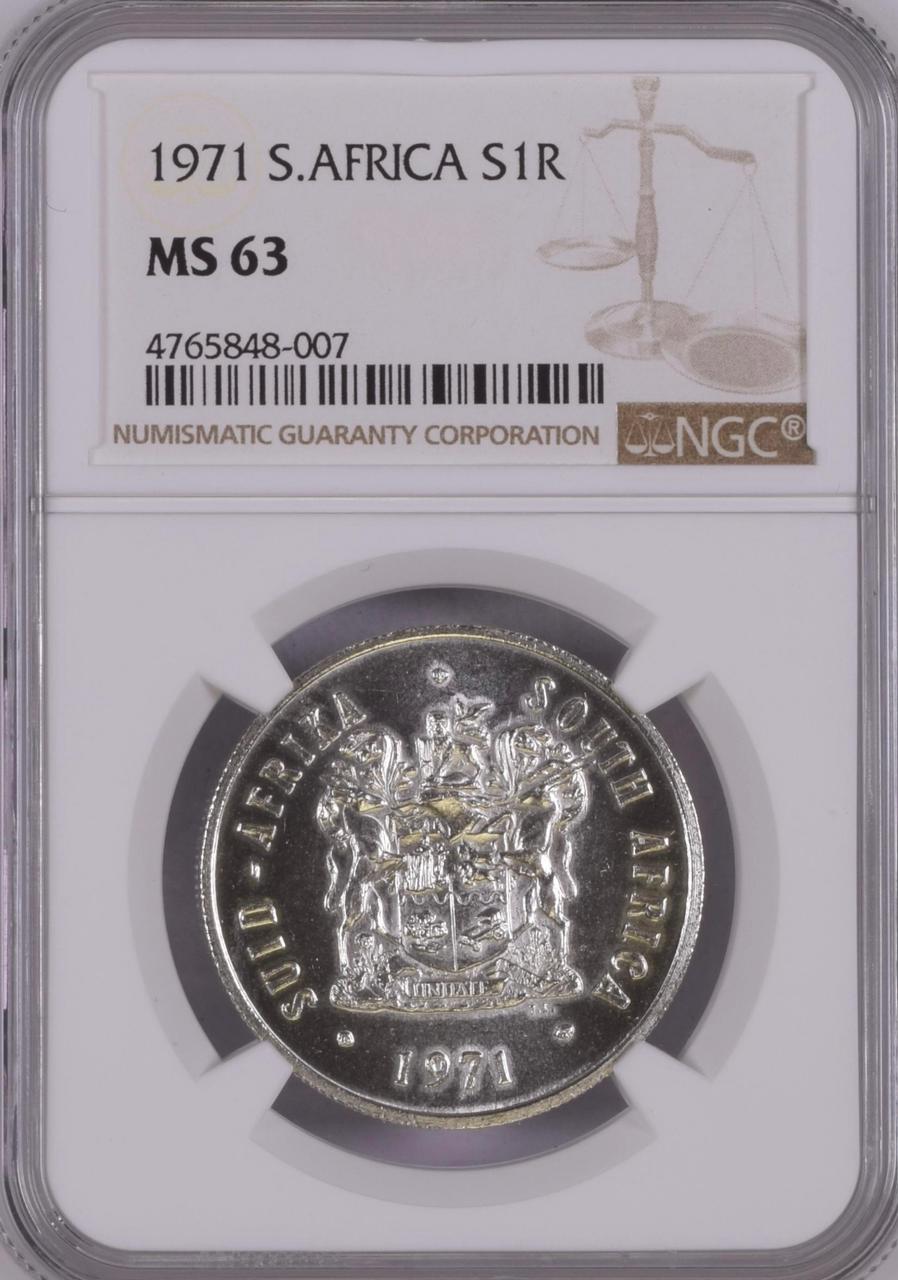 South Africa: Republic Silver R1 of 1971 MS 63 NGC.