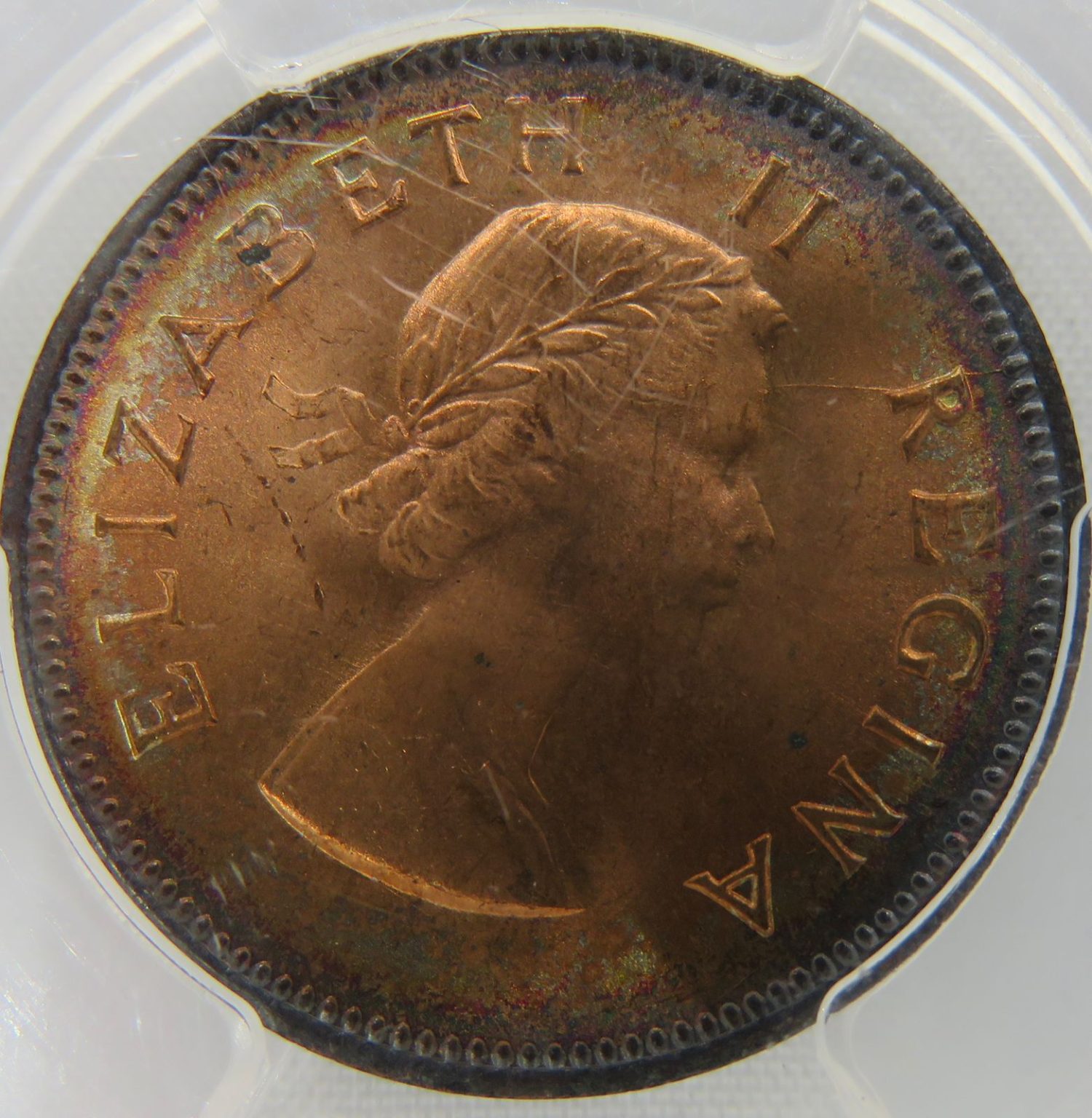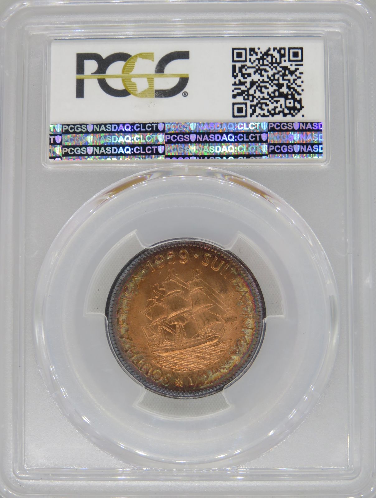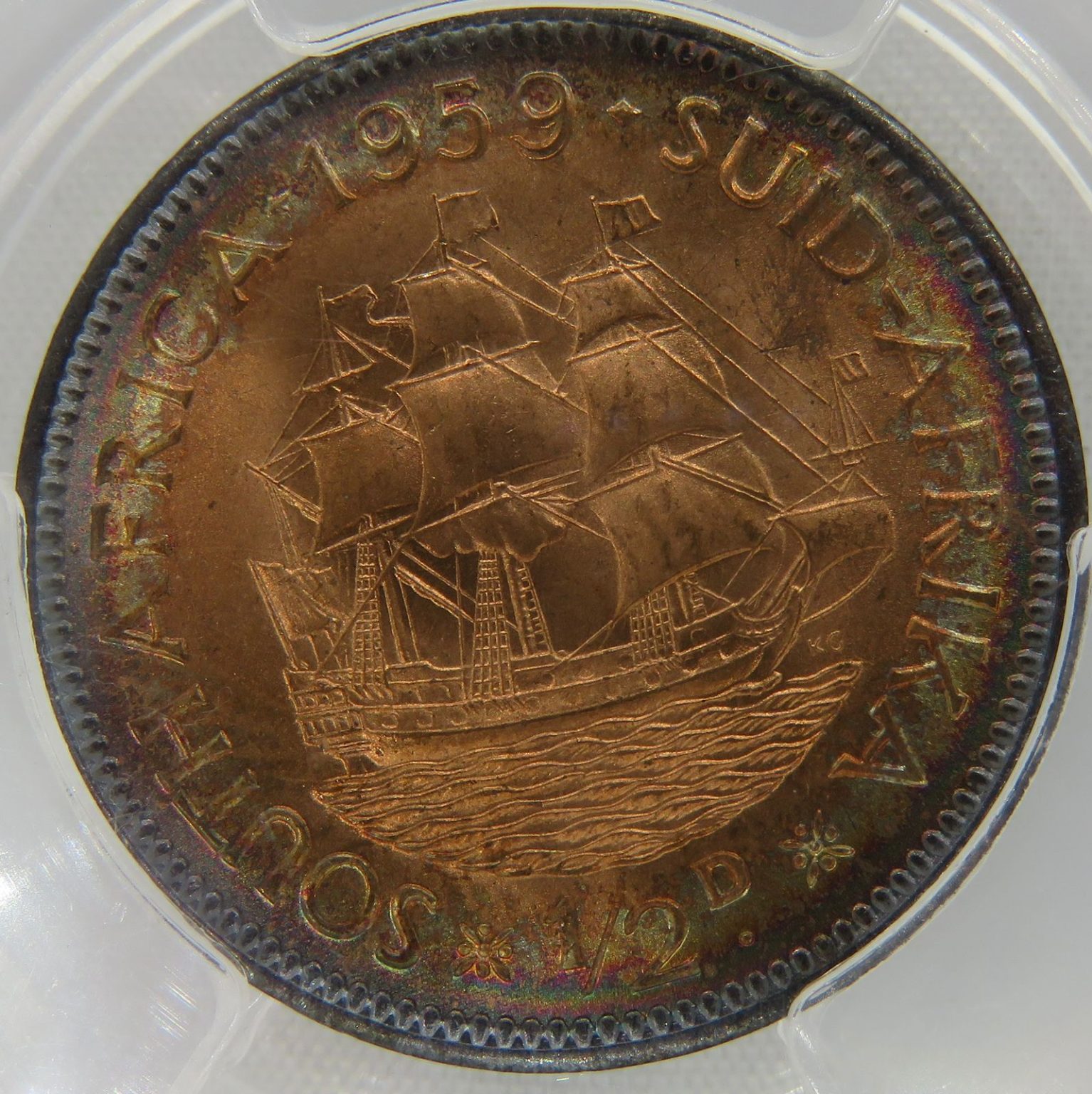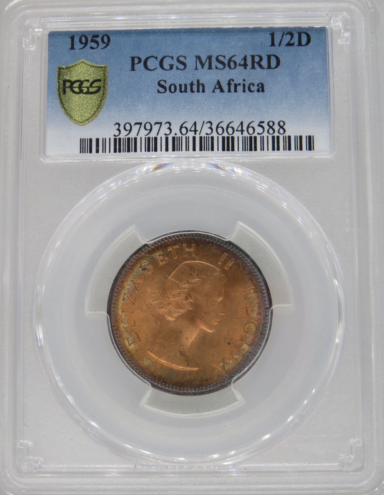 South Africa: Union Elizabeth II bronze 1/2 penny of 1959 MS 64 Red PCGS.