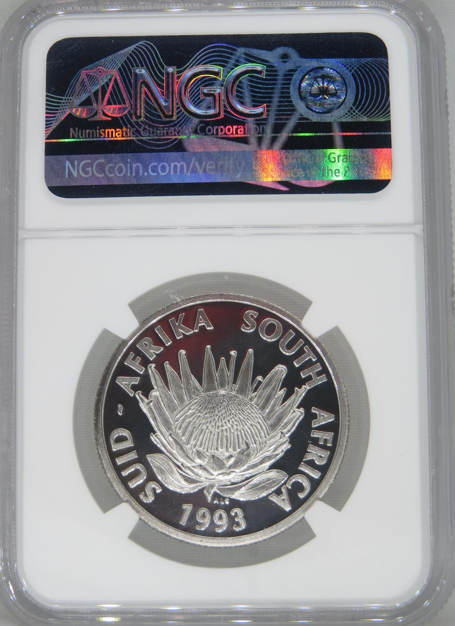 South Africa: Republic Protea Silver R1 “Banking Bicentennial” of 1993 MS 69 NGC.