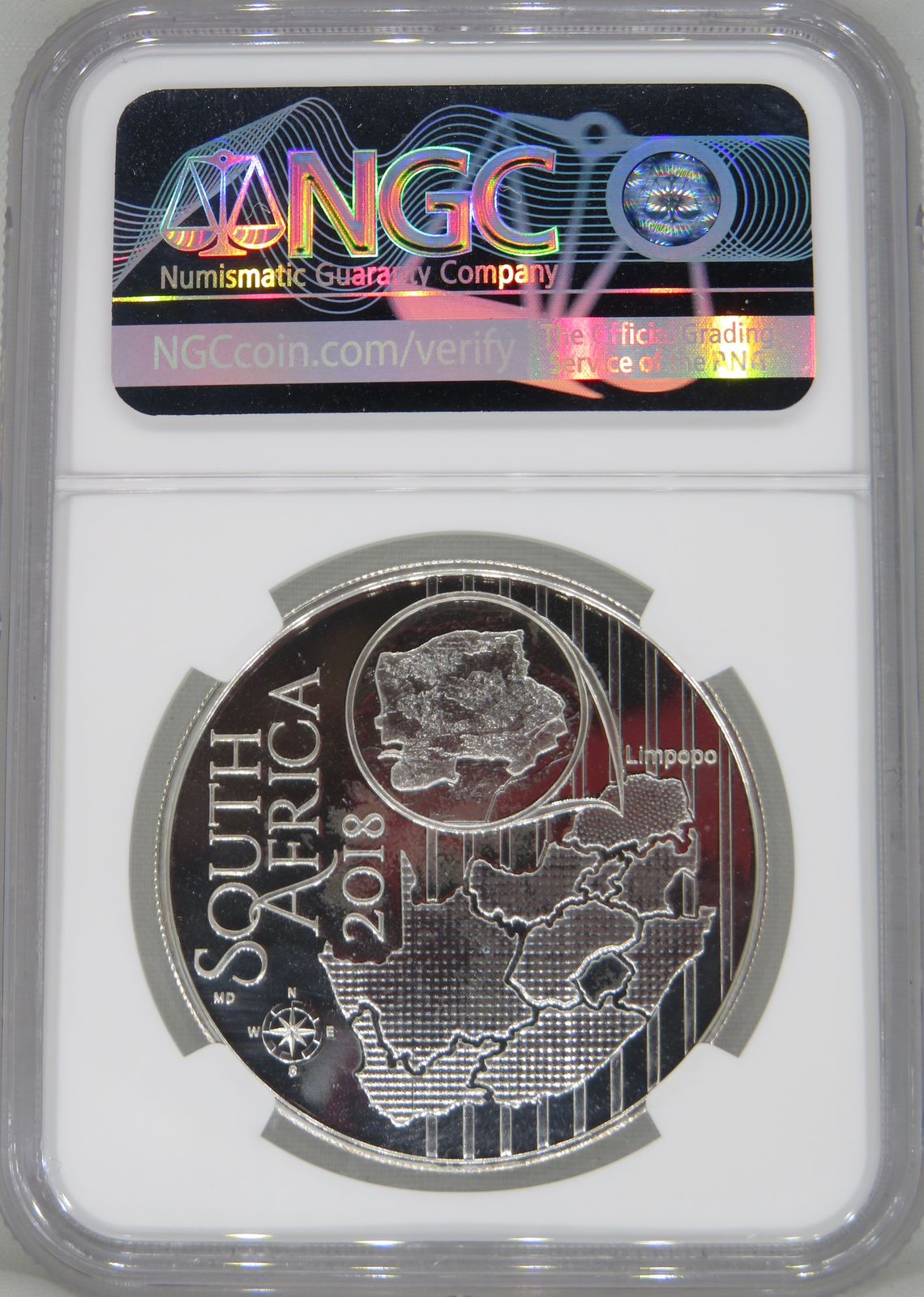 Lot 41: South Africa: Republic “Crinum Graminicola” (Grass Crinum) Colourized R5 (1oz Silver) of 2018 Proof 68 Ultra Cameo NGC.