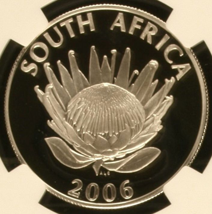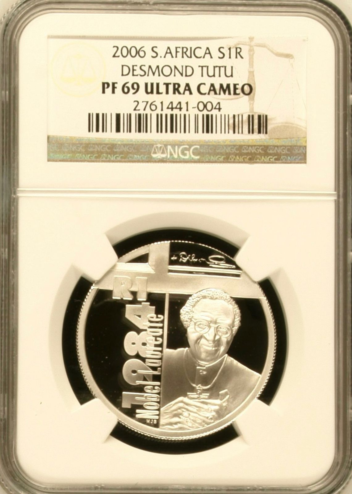South Africa: Republic Protea Silver R1 “Desmond Tutu” of 2006 Proof 69 Ultra Cameo NGC.