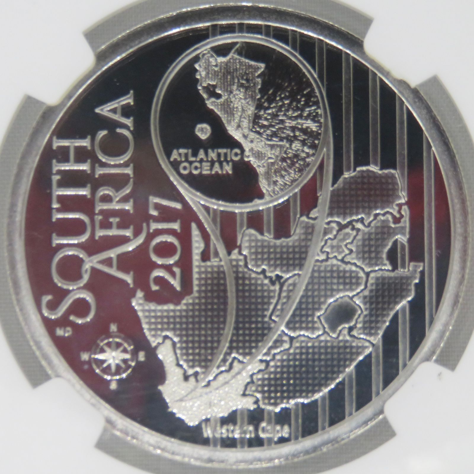 Lot 43: South Africa: Republic “Hydroprogne Caspia” (Caspian Tern) Colourized R10 (1oz Silver) of 2017 PF 69 NGC