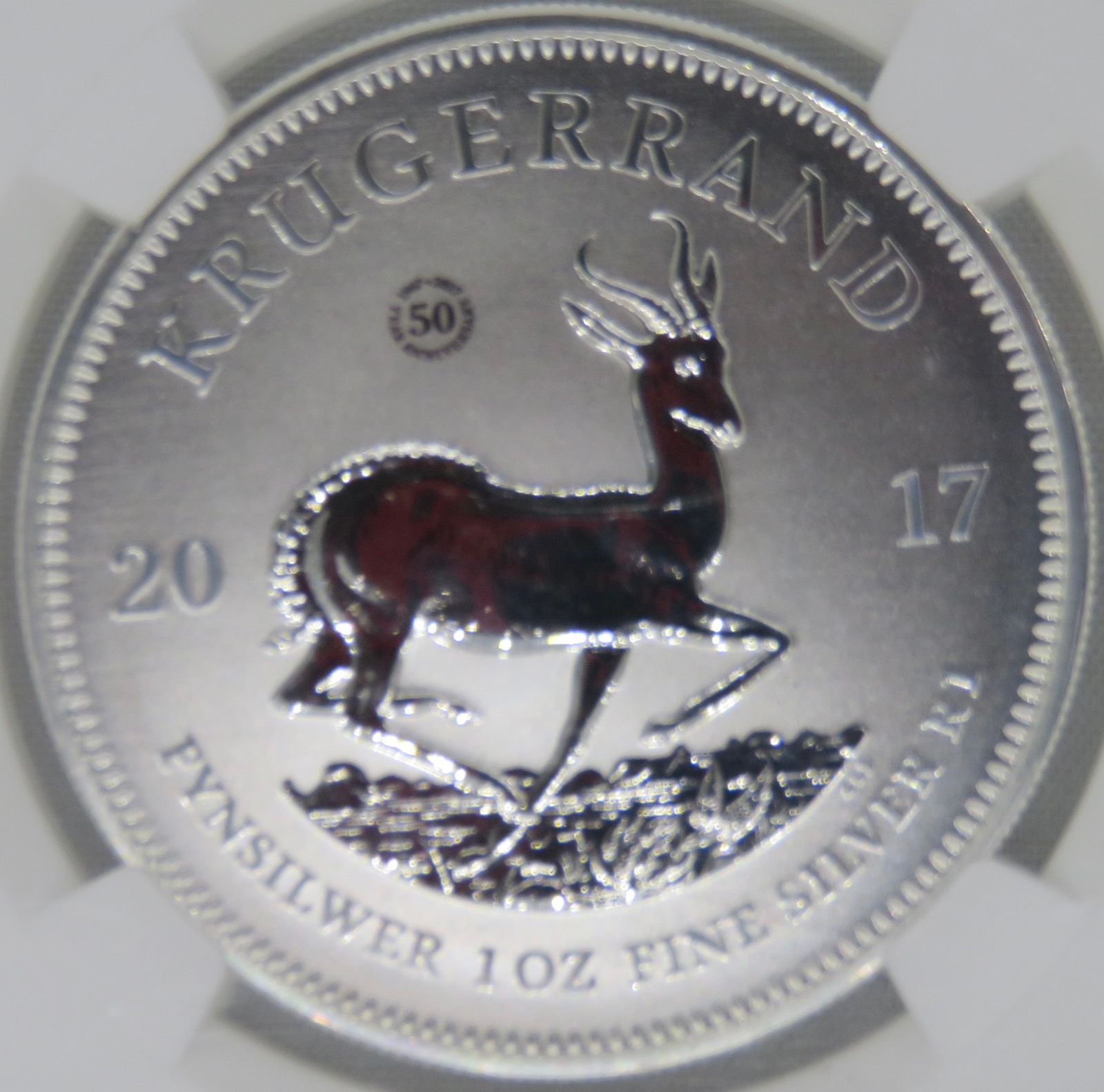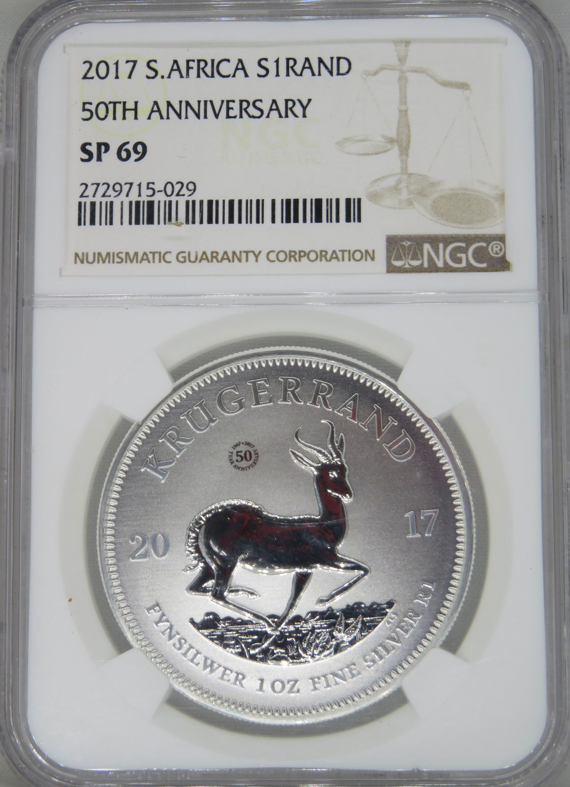 South Africa: Republic Silver Krugerrand 1oz Fine Silver “50 Years Anniversary 1967-2017” Mintmark SP 69 NGC.