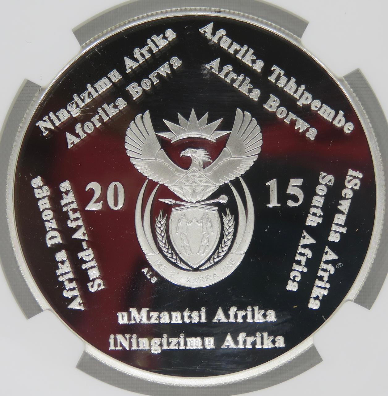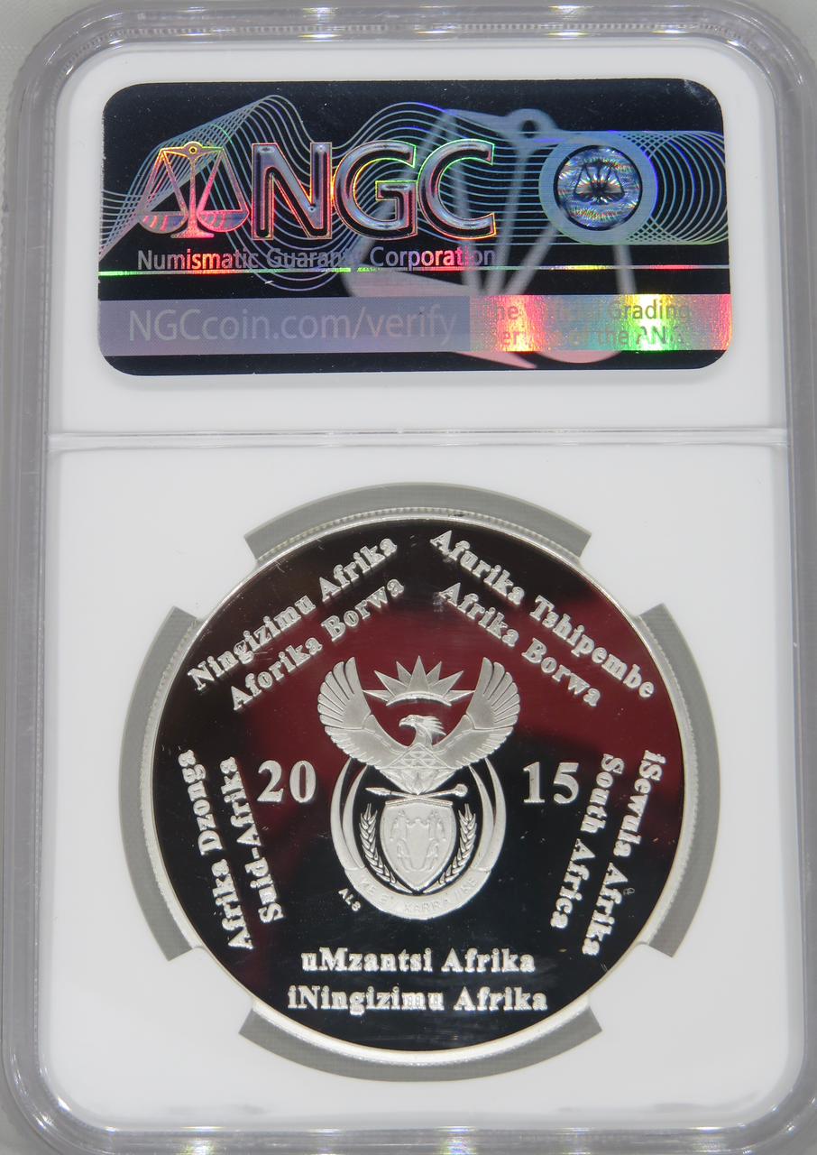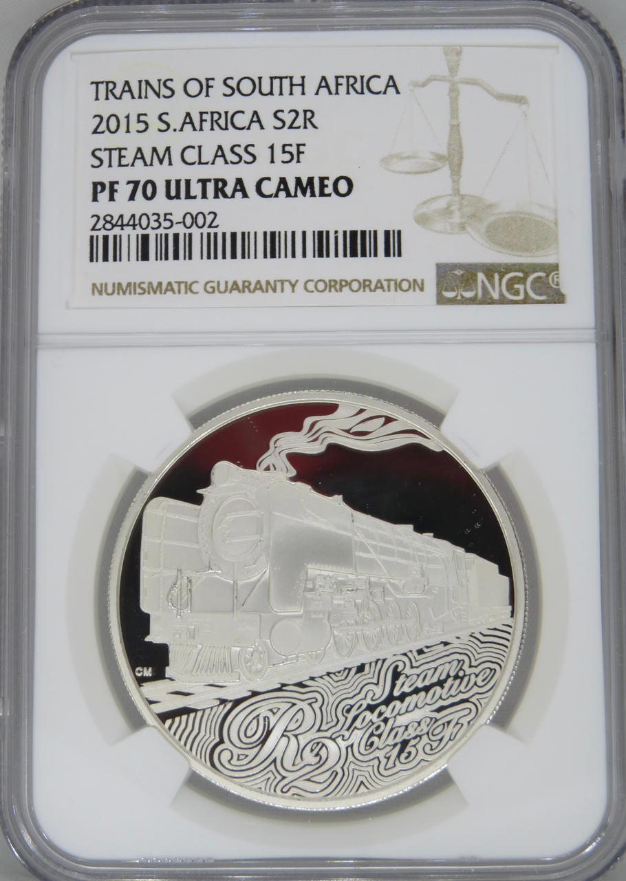 South Africa: Republic Silver R2 “Trains of South Africa – Steam Class 15F” of 2015 Proof 70 NGC.